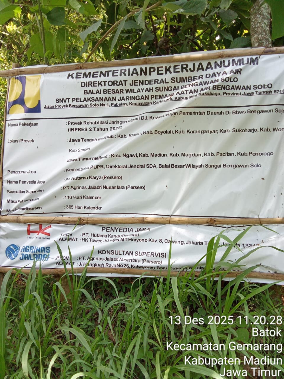 MATAHUKUM.ID/MADIUN – Pengerjaan proyek irigasi yang digagas Balai Besar Wilayah Sungai (BBWS) Bengawan Solo, Dirjen SDA, Kementerian PUPR, yang berlokasi di Desa Morang, Kecamatan Kare, Madiun, Jawa Timur, menyisakan sakit hati para kuli bangunan yang terlibat proses pembangunan.