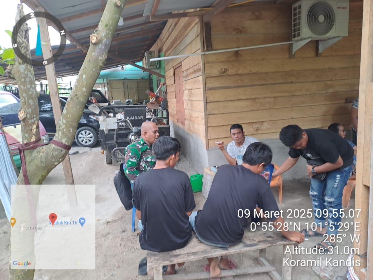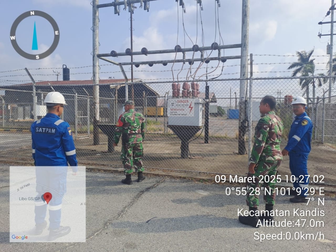 Babinsa Sertu Aprianto bersama Serda Satria M, pada pukul 10 : 35 Wib melaksanakan patroli Long Line Pipa di jalan Caltex Libo Baru Kampung Libo Jaya dan pada pukul 11 : 45 Wib melaksanakan patroli di Long Line Pipa Pertamina area GS 5 Libo Kampung Libo Jaya.