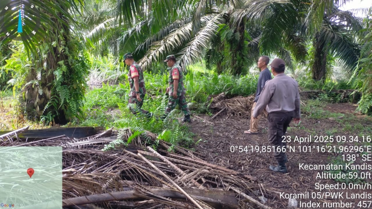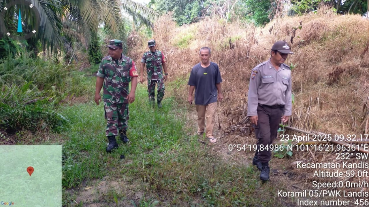 KANDIS – MATAHUKUM.ID – Babinsa Koramil 05/Pwk Kandi yaitu Sertu Suriyadi dan Kopda Dedi Irawan bersama dua orang warga tempatan melaksanakan kegiatan rutin yaitu berpatroli karhutlah diarea lahan rawan terbakar hari ini di wilayah Kampung Bekalar Kecamatan Kandis Kabupaten Siak, Riau. Rabu, 23 April 2025.
