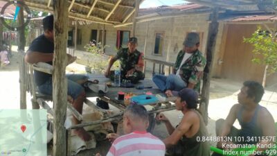 KANDIS – MATAHUKUM.ID – Babinsa Koramil 05/Pwk Kandis Kodim 0322 /Siak, Sertu Suriyadi melaksanakan Komsos bersama warga Kampung Bekalar Kecamatan Kandis Kabupaten Siak, Riau. Minggu, 30 November 2025.
