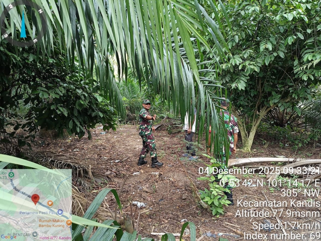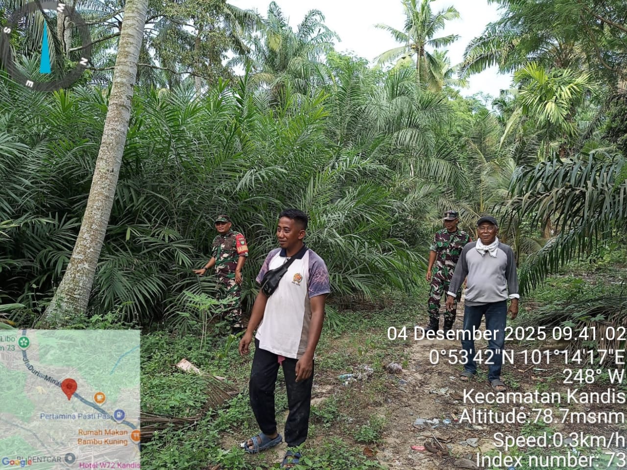 KANDIS – MATAHUKUM.ID – Babinsa Koramil 05/Pwk Kandis yaitu Sertu Suriyadi dan Sertu Ridho Utomo melaksanakan kegiatan patroli karhutla di wilayah Kampung Bekalar Kecamatan Kandis Kabupaten Siak, Riau. Kamis, 4 Desember 2025.