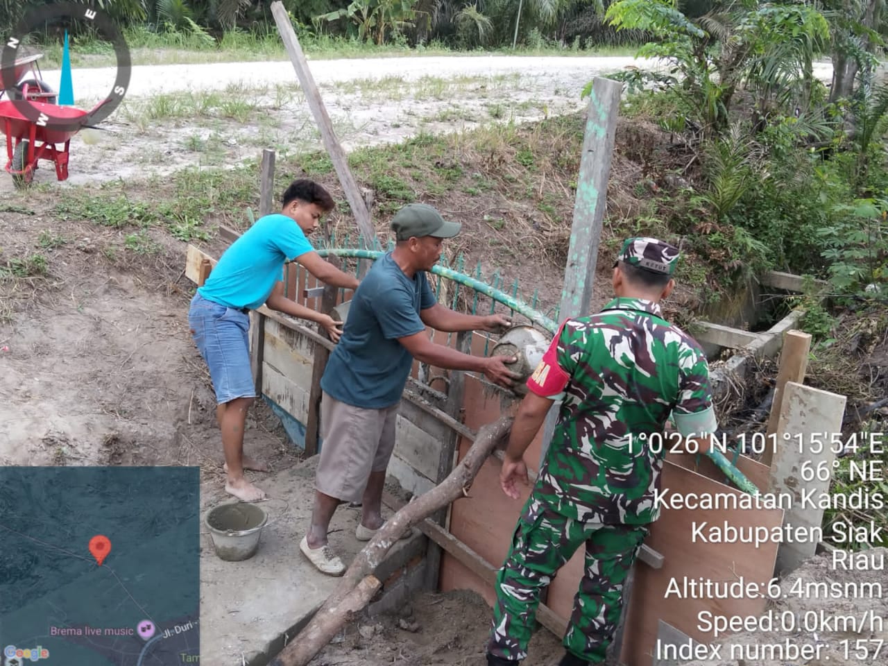 KANDIS – MATAHUKUM.ID – Babinsa Koramil 05/Kandis Kodim 0322 /Siak. Koptu I Ketut Budiasa hari ini melaksanakan kegiatan gotong royong yaitu membantu melakukan pembuatan Drainase di Kampung Kandis Kecamatan Kandis Kabupaten Siak, Riau. Sabtu, 13 Desember 2025.