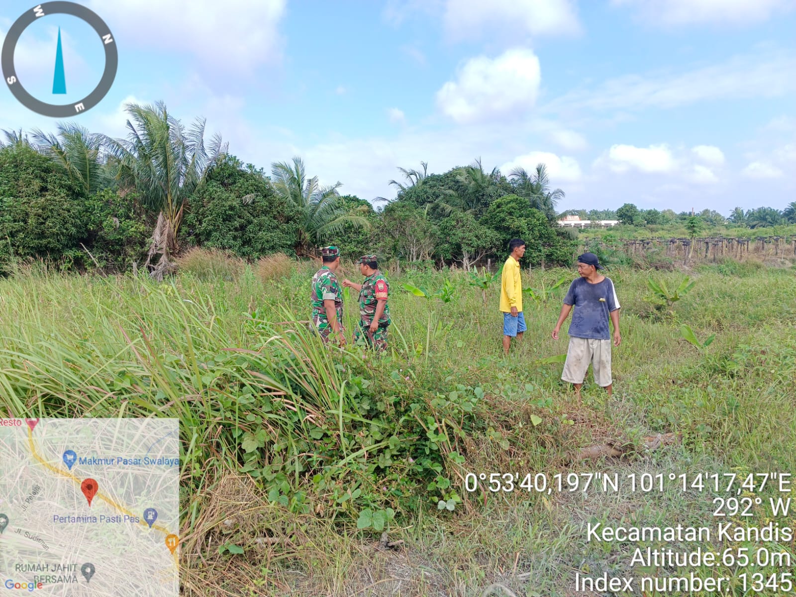 Babinsa Serma Budi Santoso bersama rekannya Koptu K. Sitohang menyebutkan,” Bahwa hari ini disaat pihaknya bersama dua orang warga tempatan melaksanakan patroli karhutlah diarea lahan rawan terbakar wilayah Kampung Kandis pada situasi kondisi cuaca cerah.