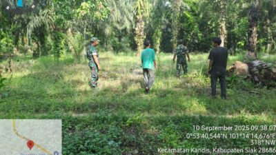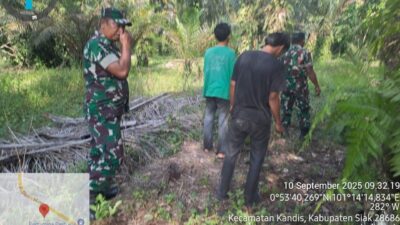 KANDIS – MATAHUKUM.ID – Babinsa Koramil 05/Pwk Kandis yaitu Sertu Andi Satria dan Koptu I Ketut Budiasa melaksanakan kegiatan patroli karhutla, hari ini memasuki wilayah Kampung Kandis Kecamatan Kandis Kabupaten Siak, Riau. Rabu, 10 September 2025.