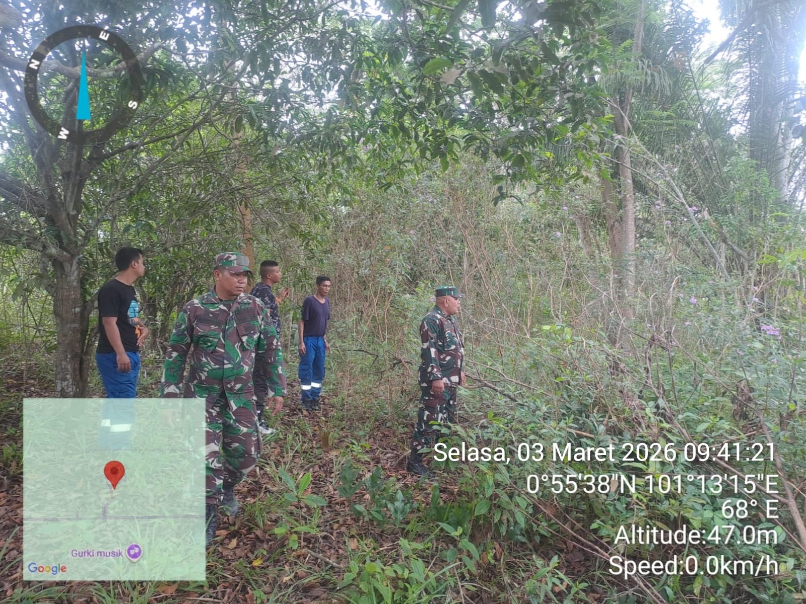 KANDIS – MATAHUKUM.ID – Babinsa Koramil 05/Pwk Kandis yaitu Sertu Bosur Siregar dan Serda Satria M melaksanakan kegiatan patroli karhutla di area lahan rawan terbakar yang berada di Kampung Libo Jaya Kecamatan Kandis Kabupaten Siak, Riau. Selasa, 3 Maret 2026.