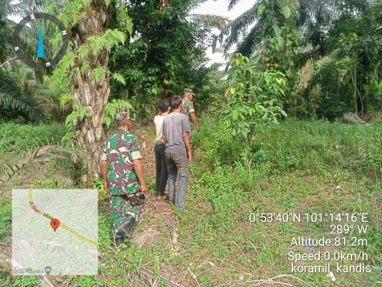 KANDIS – MATAHUKUM.ID – Babinsa Koramil 05/Pwk Kandi yaitu Sertu Aprianto dan Serda Satria M bersama dua orang warga tempatan melaksanakan kegiatan rutin yaitu berpatroli karhutlah diarea lahan rawan terbakar hari ini di wilayah Kampung Sungai Gondang Kecamatan Kandis Kabupaten Siak, Riau.