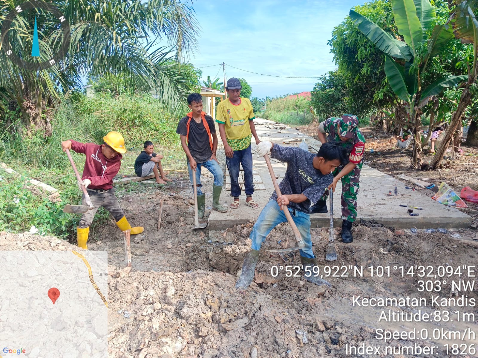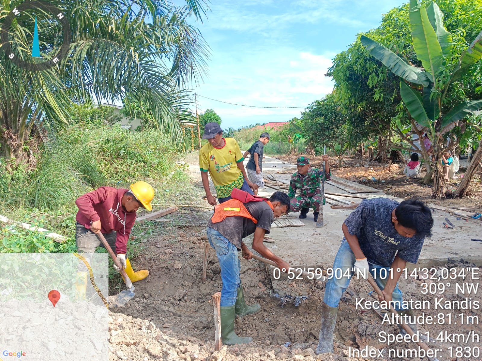 Menurut keterangan Babinsa Serma Budi Santoso,” Bahwa pagi ini pihaknya telah melakukan kegiatan gotong royong bersama beberapa warga yaitu membantu melakukan semenisasi yang terletak di Kampung Kandis.