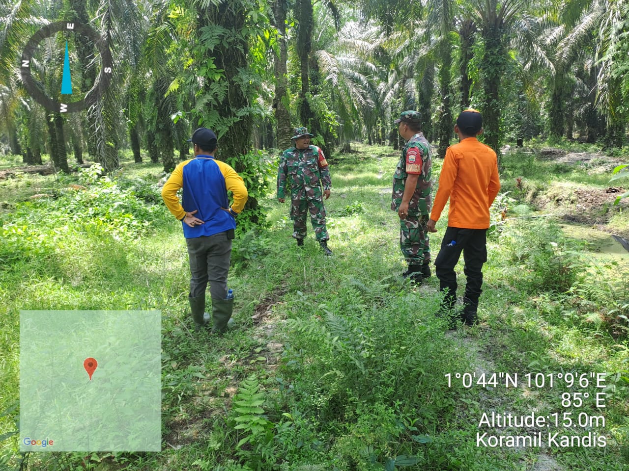 Babinsa Serda Satria M bersama rekannya Serda D. Gultom menyebutkan,” Bahwa hari ini disaat pihaknya bersama empat orang warga tempatan melaksanakan patroli karhutlah diarea lahan rawan terbakar di wilayah Kampung Sam Sam pada situasi kondisi cuaca cerah.