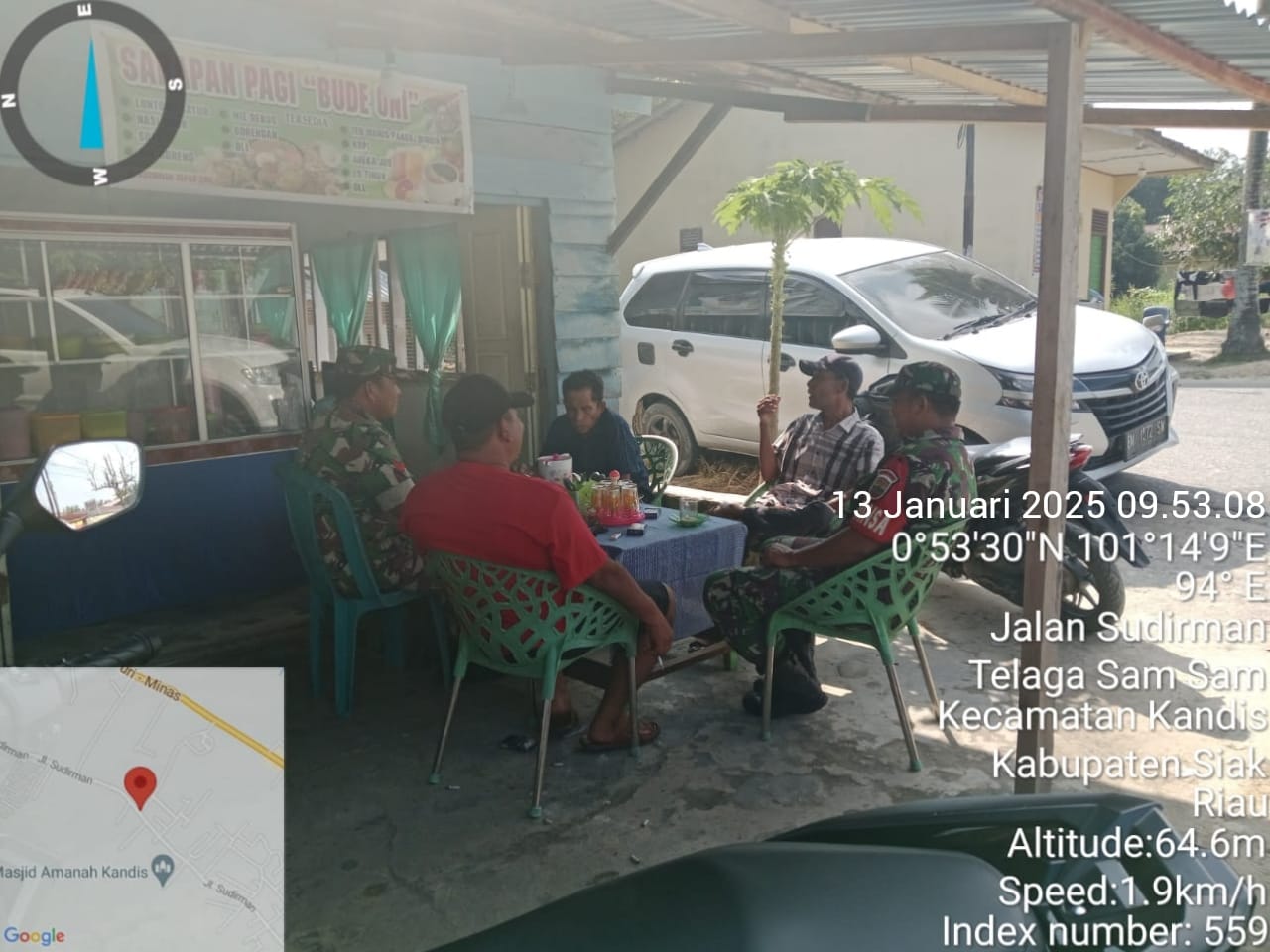 Pada pukul 09. 00 Wib, Sebelum Patroli dilakukan Babinsa Sertu Andi Satria bersama rekannya Koptu K. Sitohang melaksanakan giat Bin Komsos tentang SKK Migas dengan warga di Simpang Libo Lama Km 73 Kelurahan Telaga Sam Sam.