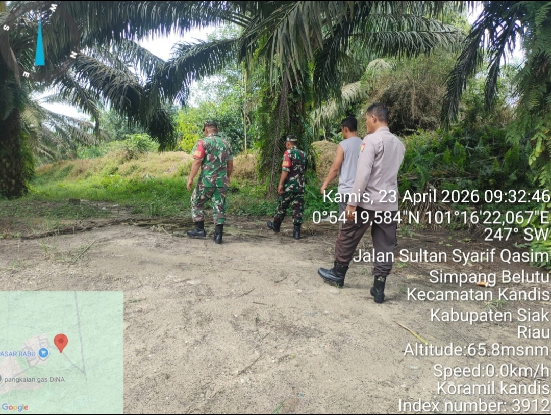 Kandis – Matahukum.id – Babinsa Koramil 05/Pwk Kandis yaitu Peltu Yus Armin dan Serda D. Gultom melaksanakan kegiatan patroli karhutla, hari ini memasuki wilayah Kampung Sam Sam Kecamatan Kandis Kabupaten Siak, Riau. Kamis, 23 April 2026.