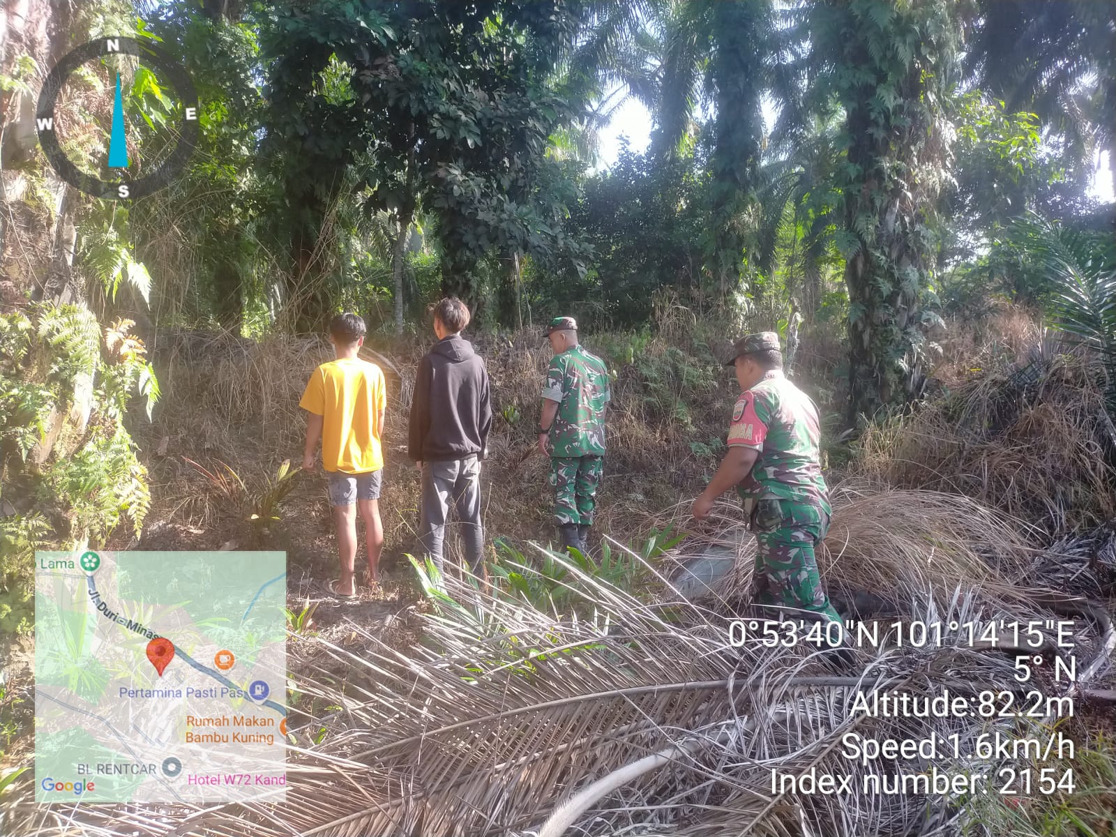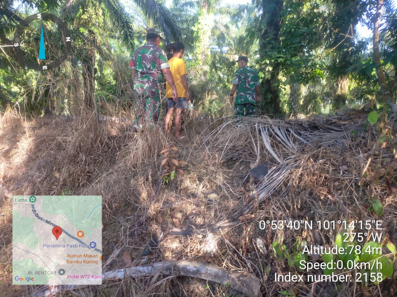 KANDIS – MATAHUKUM.ID – Babinsa Koramil 05/Pwk Kandis, Sertu Sutikno dan Sertu Andi Satria  bersama warga tempatan melaksanakan kegiatan Patroli Kebakaran Hutan dan Lahan di sejumlah perkebunan serta lahan masyarakat yang dianggap rawan kebakaran diwilayah Kampung Sam Sam Kecamatan Kandis Kabupaten Siak, Riau. Rabu, 27 Agustus 2025.
