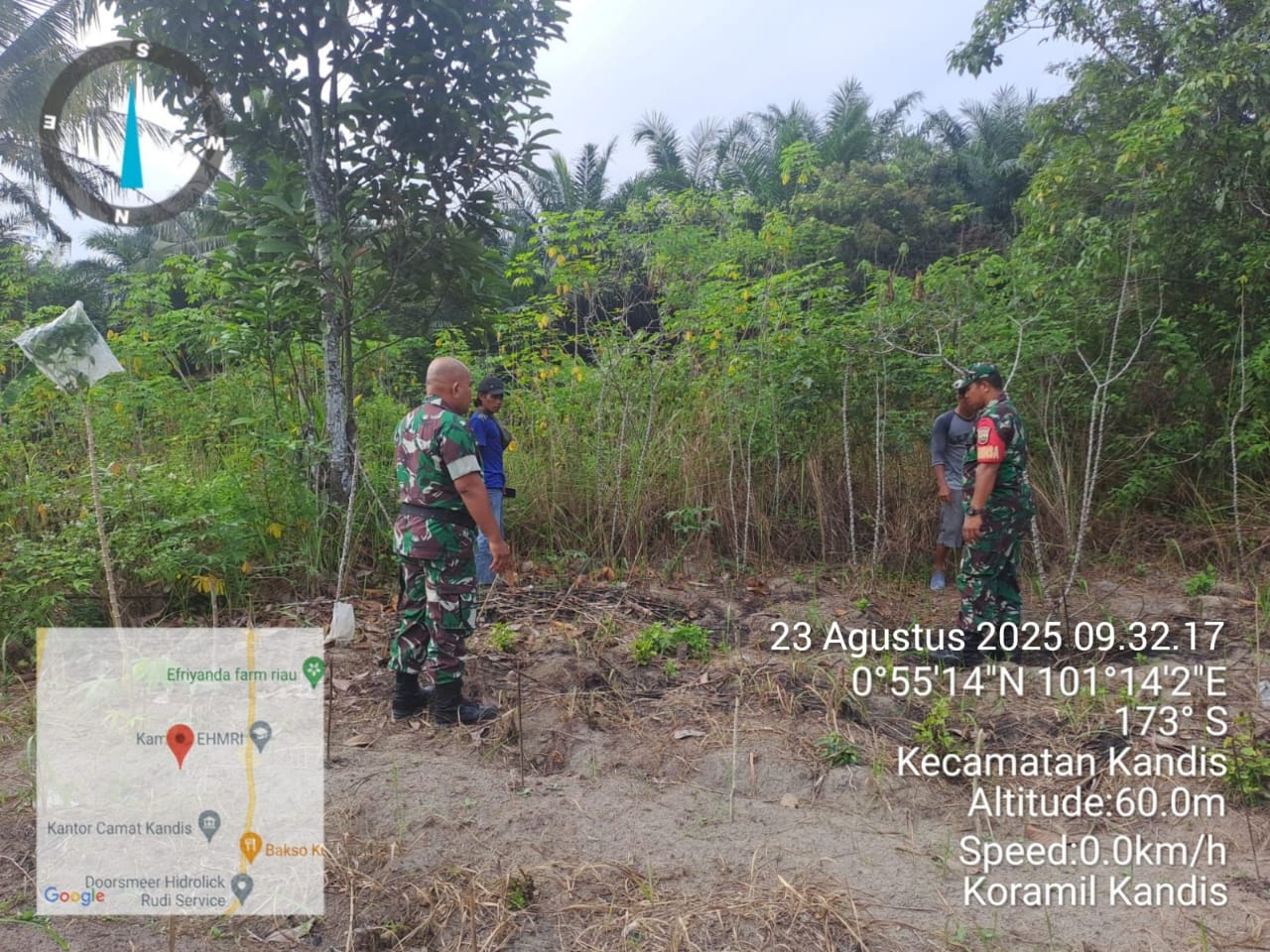 KANDIS – MATAHUKUM.ID – Babinsa Koramil 05/Pwk Kandis, Sertu Suriyadi dan Serda Satria Marni bersama warga tempatan melaksanakan kegiatan Patroli Kebakaran Hutan dan Lahan di sejumlah perkebunan serta lahan masyarakat yang dianggap rawan kebakaran diwilayah Kampung Libo Jaya Kecamatan Kandis Kabupaten Siak, Riau. Sabtu, 23 Agustus 2025.