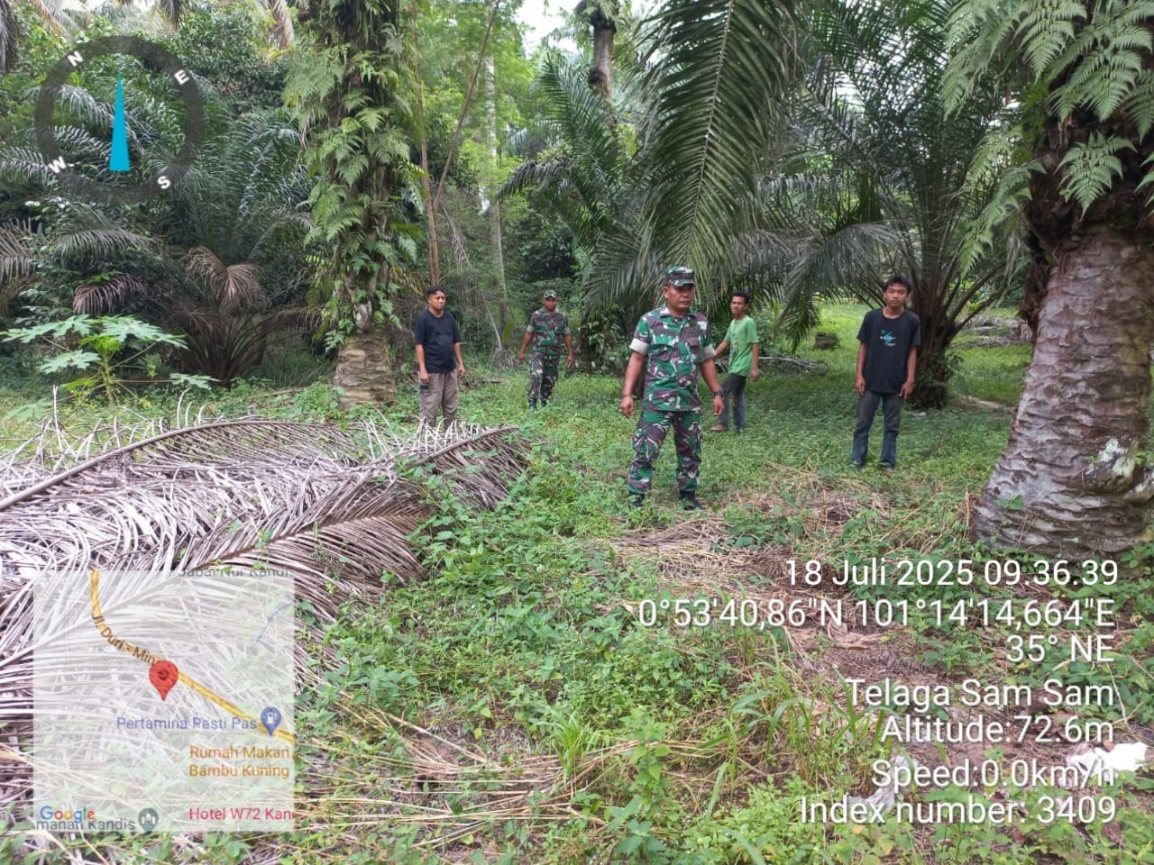 KANDIS – MATAHUKUM.ID – Babinsa Koramil 05/Pwk Kandis yaitu Sertu Bosur Siregar dan Serda Edy Simanjuntak bersama warga tempatan melaksanakan kegiatan rutin yaitu berpatroli karhutlah diarea lahan rawan terbakar hari ini di wilayah Kampung Sam Sam Kecamatan Kandis Kabupaten Siak, Riau.