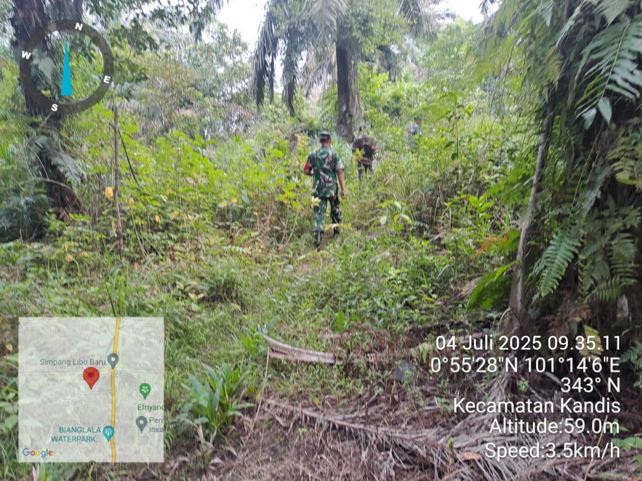 Babinsa Kandis Berpatroli Pencegahan Karhutlah Diwilayah Kampung Libo Jaya
