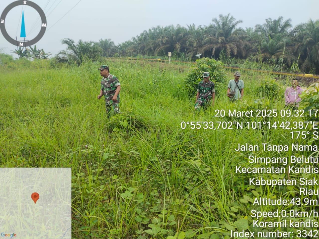 KANDIS – MATAHUKUM.ID – Babinsa Koramil 05/Pwk Kandi yaitu Sertu Aprianto dan Serda D. Gultom dua orang warga tempatan melaksanakan kegiatan rutin yaitu berpatroli karhutlah diarea lahan rawan terbakar hari ini di wilayah Kelurahan Simpang Belutu Kecamatan Kandis Kabupaten Siak, Riau. Kamis, 20 Maret 2025.