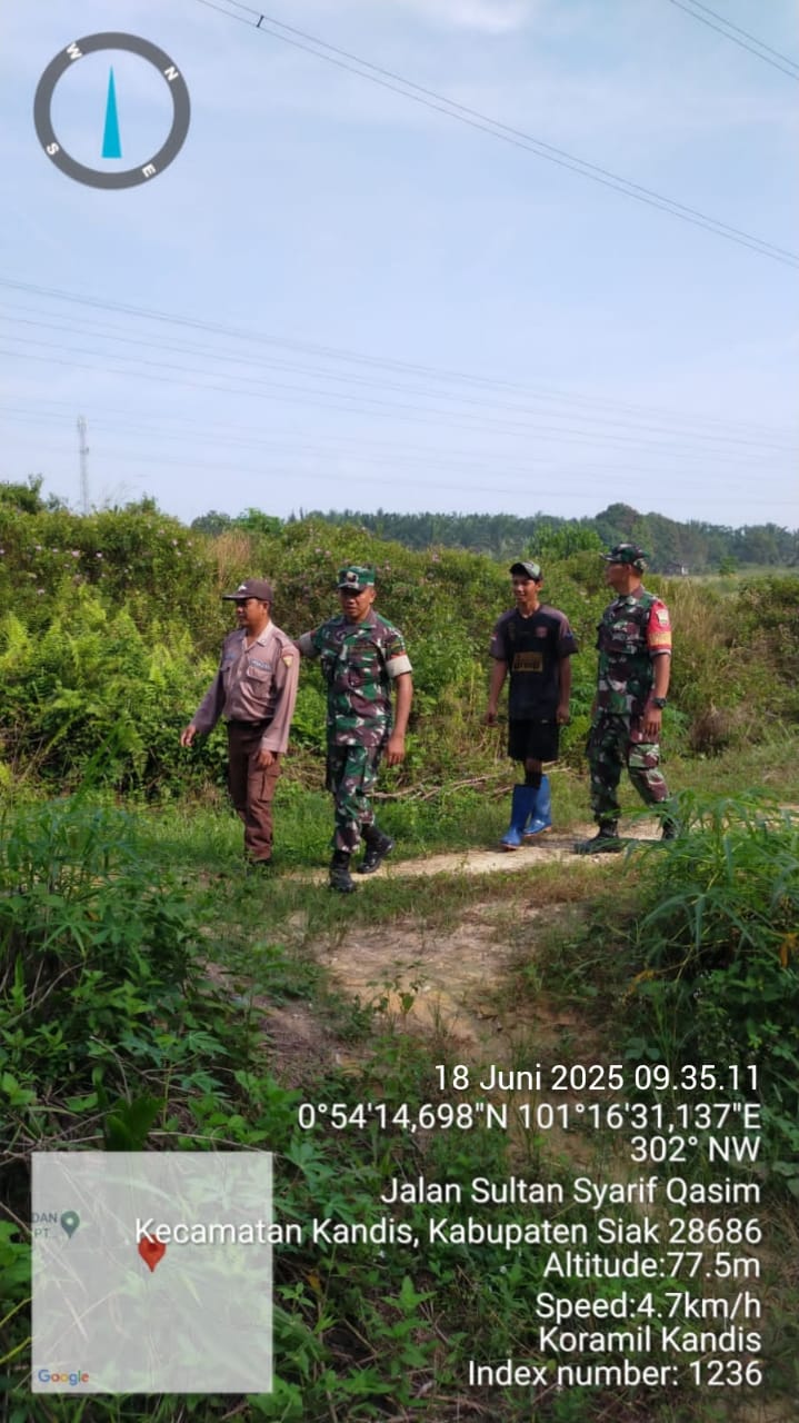 Babinsa Sertu Suriyadi bersama rekannya Koptu I Ketut Budiasa menyebutkan,” Bahwa hari ini disaat pihaknya bersama warga tempatan melaksanakan patroli karhutlah diarea lahan rawan terbakar di wilayah Kampung Kandis pada situasi kondisi cuaca cerah.