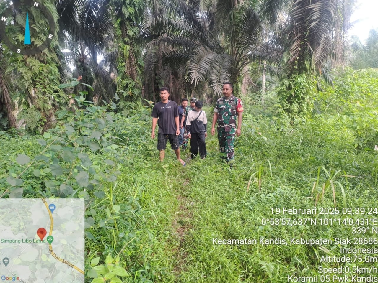 KANDIS – MATAHUKUM.ID – Babinsa Koramil 05/Pwk Kandi yaitu Sertu Andi Satria dan Serda Satria M bersama tiga orang masyarakat melaksanakan kegiatan rutin yaitu berpatroli karhutlah diarea lahan rawan terbakar hari ini di wilayah Kelurahan Telaga Sam Sam Kecamatan Kandis Kabupaten Siak, Riau. Rabu, 19 Februari 2025.