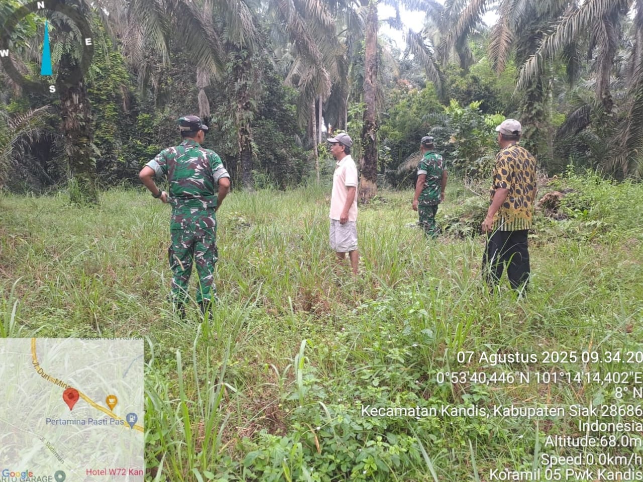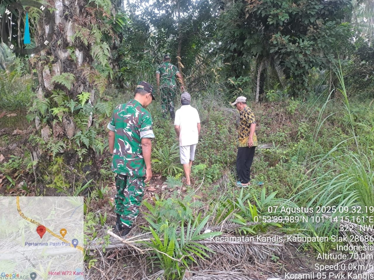 KANDIS – MATAHUKUM.ID – Babinsa Koramil 05/Pwk Kandis yaitu Peltu Yus Armin bersama rekannya Sertu Andi Satria dan Masyarakat Tempatan melaksanakan kegiatan rutin yaitu berpatroli karhutlah diarea lahan rawan terbakar hari ini di wilayah Kelurahan Telaga Sam Sam Kecamatan Kandis Kabupaten Siak, Riau.