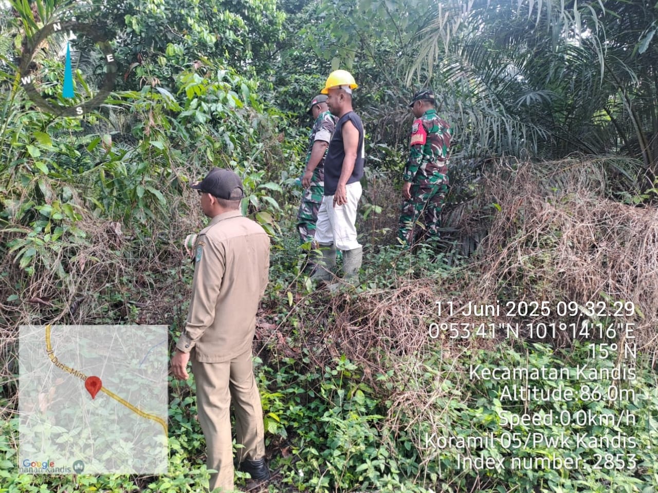 Babinsa Sertu Julia Darma bersama rekannya Sertu Andi Satria menyebutkan,” Bahwa hari ini disaat pihaknya bersama warga tempatan melaksanakan patroli karhutlah diarea lahan rawan terbakar di wilayah Kelurahan Telaga Sam Sam pada situasi kondisi cuaca cerah.