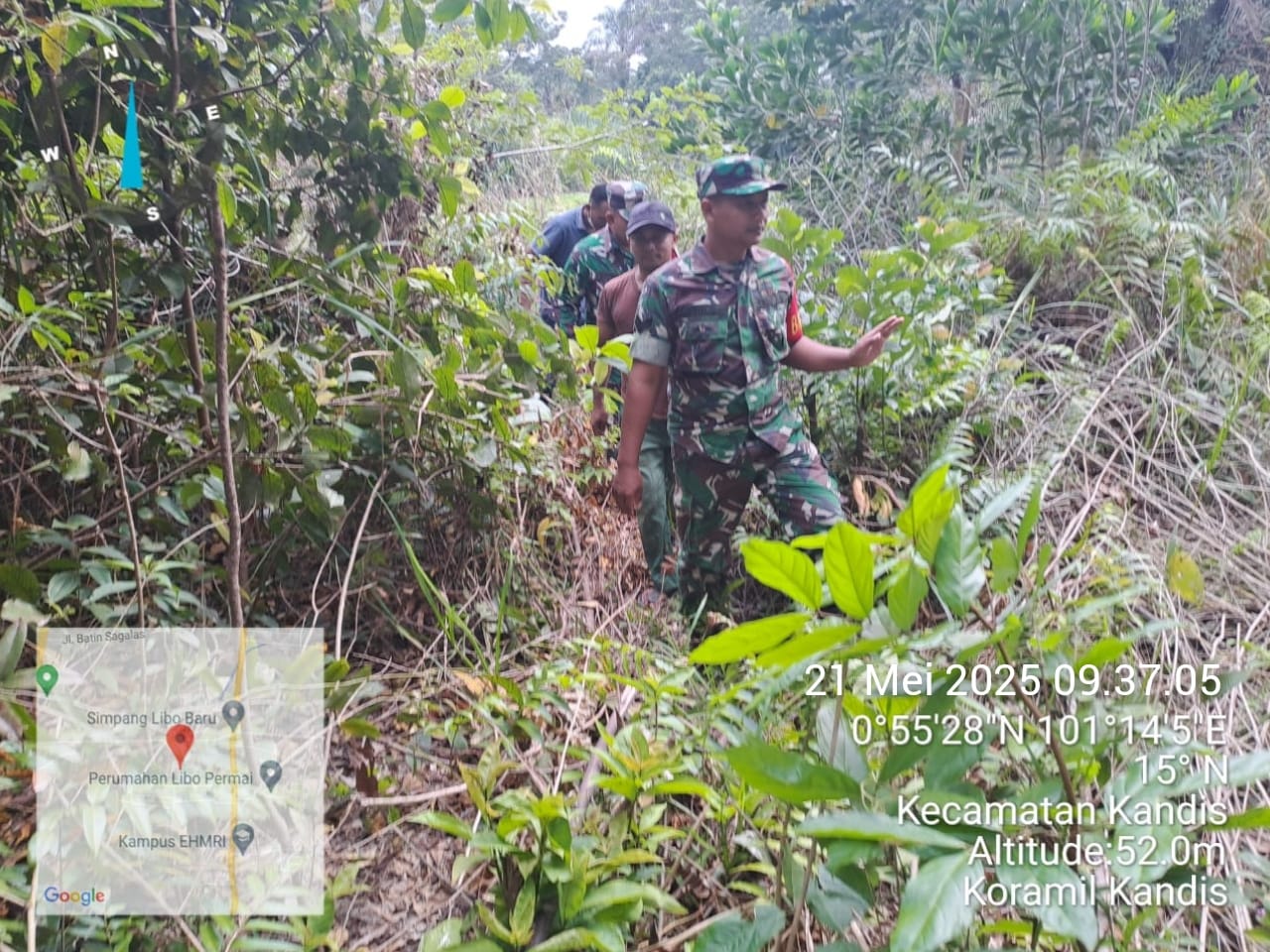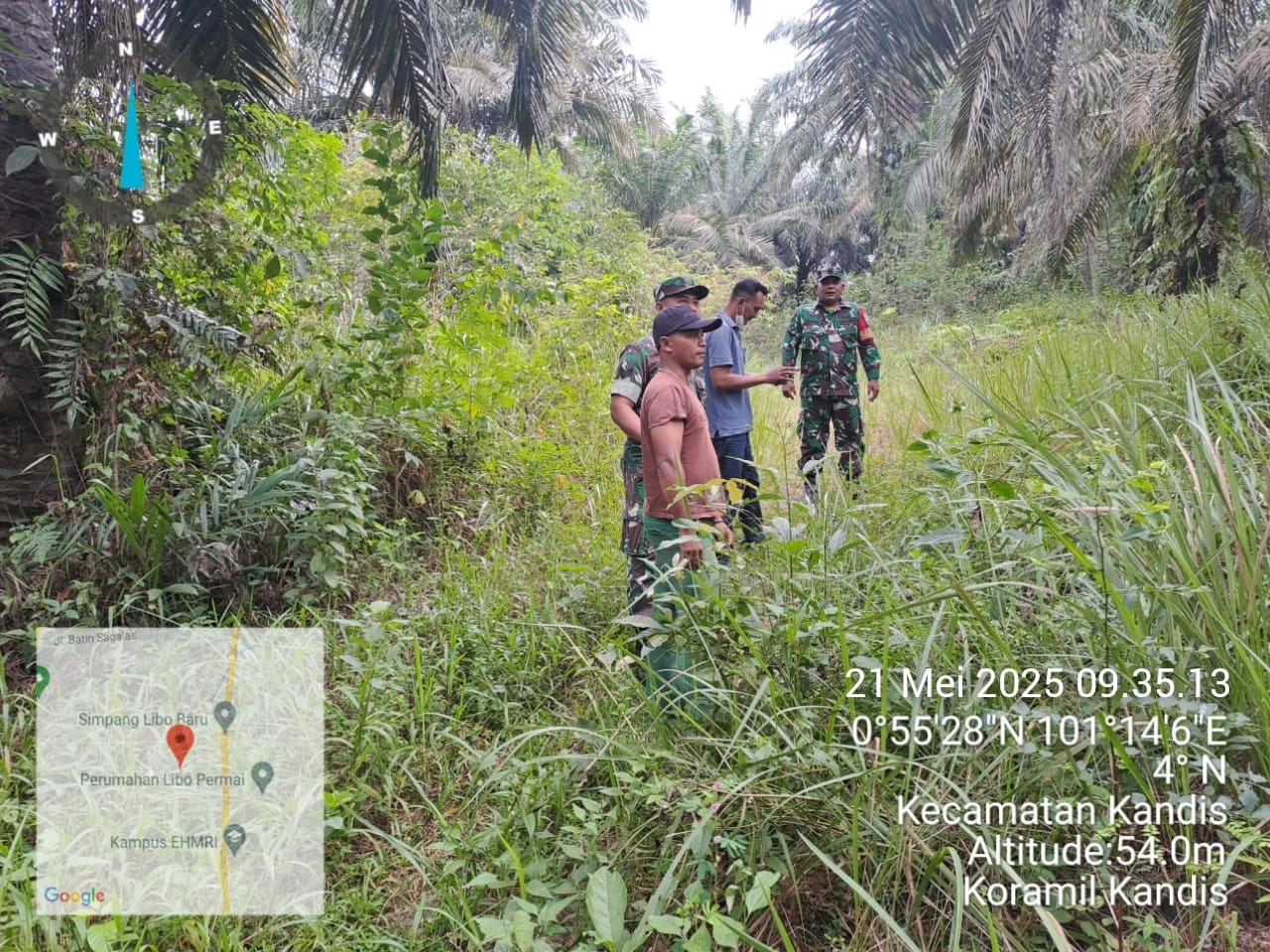 Babinsa Sertu Suriyadi bersama rekannya Serda Satria M menyebutkan,” Bahwa hari ini disaat pihaknya bersama dua orang warga tempatan melaksanakan patroli karhutlah diarea lahan rawan terbakar di wilayah Kampung Libo Jaya pada situasi kondisi cuaca cerah.