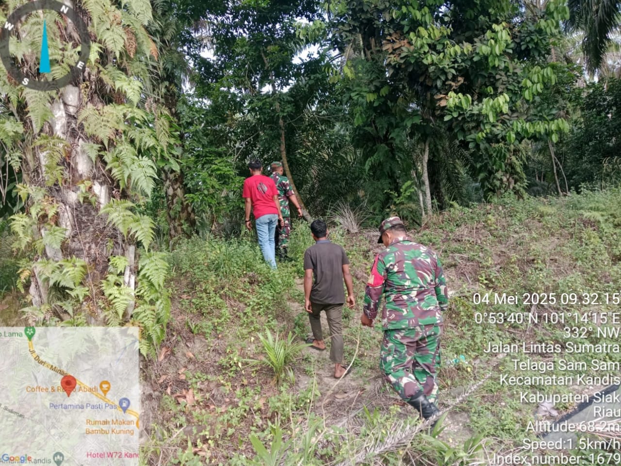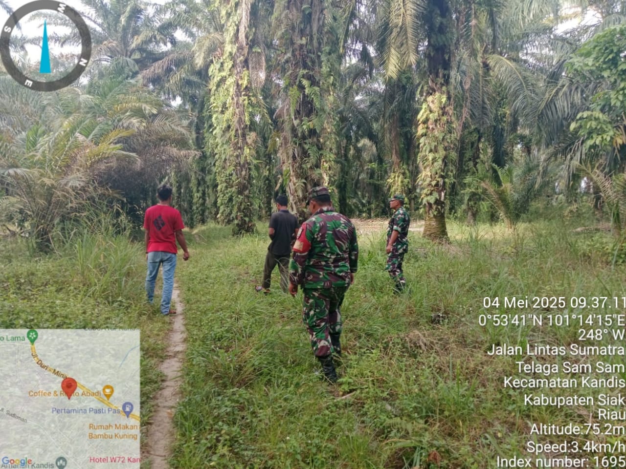 KANDIS – MATAHUKUM.ID – Babinsa Koramil 05/Pwk Kandi yaitu Sertu Ridho Utomo dan Koptu K. Sitohang bersama dua orang warga tempatan melaksanakan kegiatan rutin yaitu berpatroli karhutlah diarea lahan rawan terbakar hari ini di wilayah Kelurahan Kandis Kota Kecamatan Kandis Kabupaten Siak, Riau. Sabtu, 4 Mei 2025.