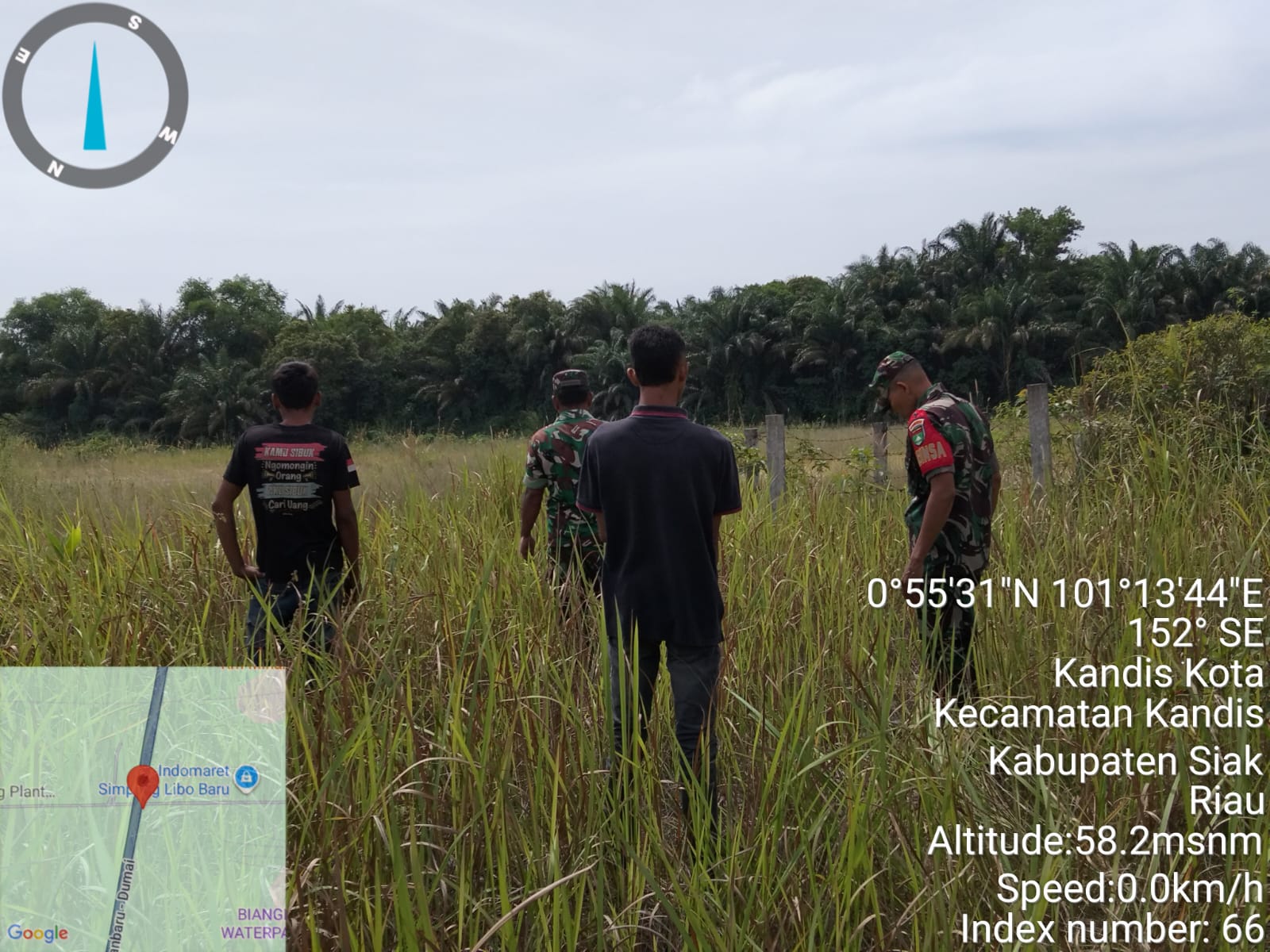 “Saat ini kami yang terdiri dari dua orang Babinsa bersama dua warga melaksanakan kegiatan patroli karhutla tepatnya di wilayah Kelurahan Kandis Kota Kecamatan Kandis Kabupaten Siak.
