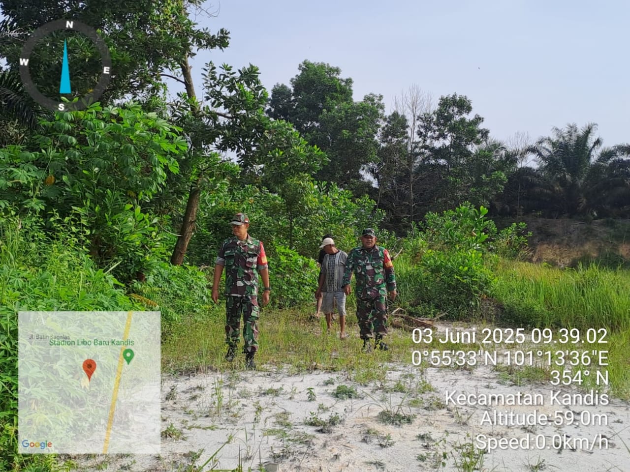 KANDIS – MATAHUKUM.ID – Babinsa Koramil 05/Pwk Kandis yaitu Peltu Yus Armin dan Serda Satria Marni bersama dua orang warga tempatan melaksanakan kegiatan rutin yaitu berpatroli karhutlah diarea lahan rawan terbakar hari ini di wilayah Kampung Pencing Bekulo Kecamatan Kandis Kabupaten Siak, Riau.