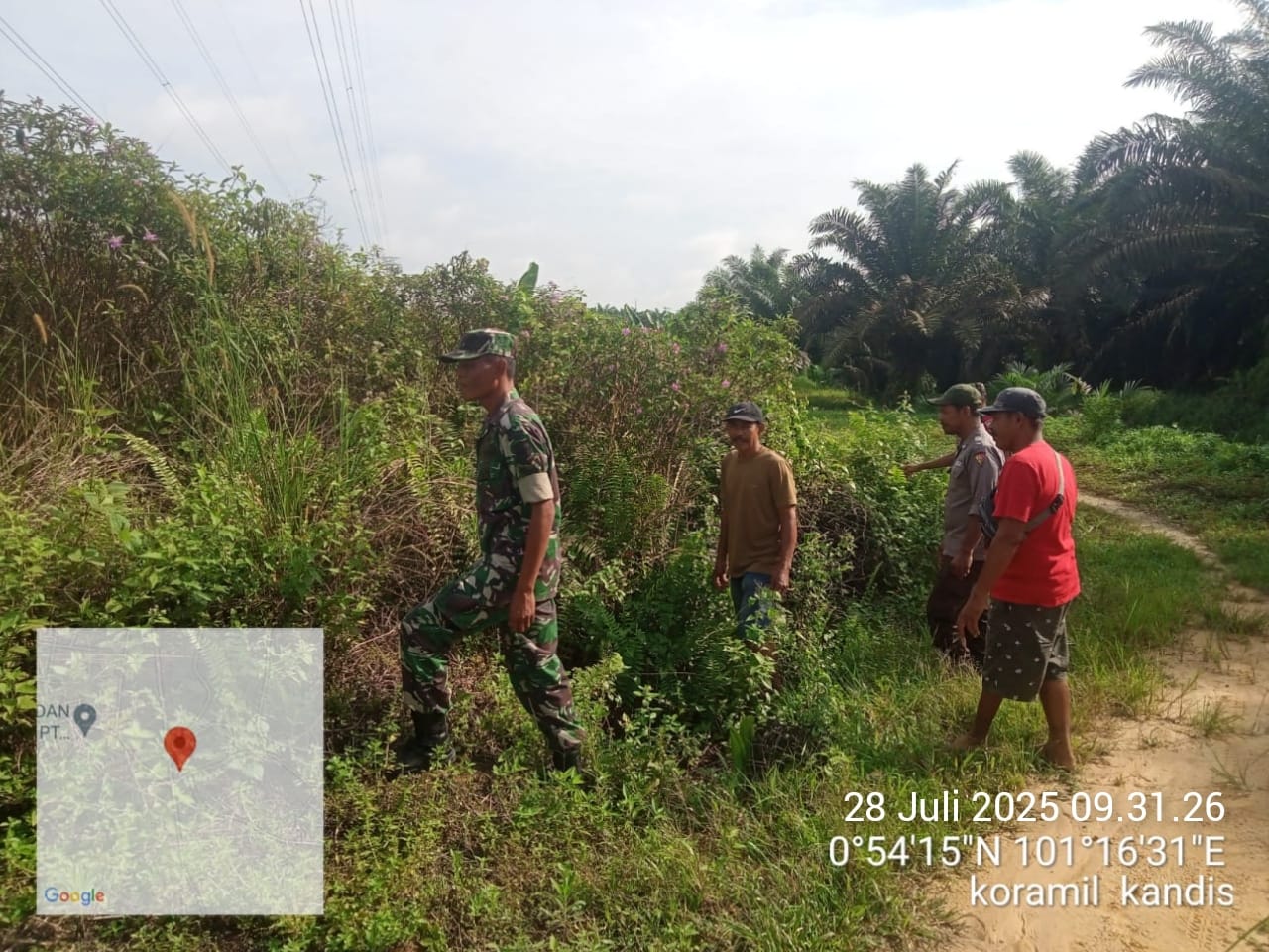 KANDIS – MATAHUKUM.ID – Babinsa Kampung Kandis yaitu Peltu Yus Armin bersama rekannya Sertu Abdul Arfan dan Masyarakat Tempatan melaksanakan kegiatan rutin yaitu berpatroli karhutlah diarea lahan rawan terbakar hari ini di wilayah Kelurahan Simpang Belutu Kecamatan Kandis Kabupaten Siak, Riau.
