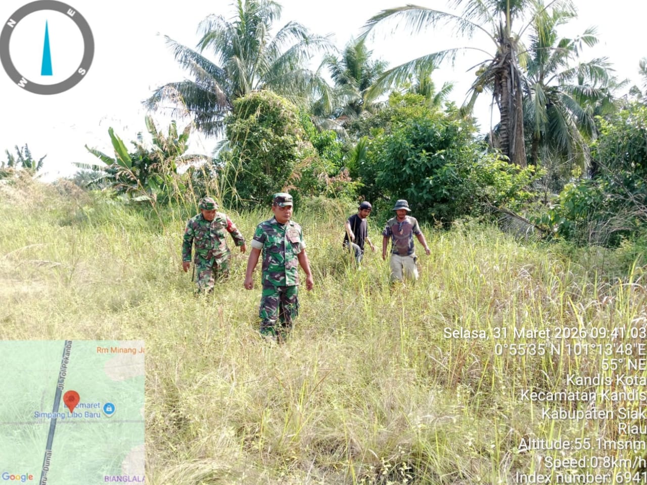 KANDIS – MATAHUKUM.ID – Babinsa Koramil 05/Pwk Kandis yaitu Sertu Edy Simanjuntak dan Koptu K. Sitohang melaksanakan kegiatan patroli karhutla di area lahan rawan terbakar yang berada di Kelurahan Simpang Belutu Kecamatan Kandis Kabupaten Siak, Riau. Selasa, 31 Maret 2026.