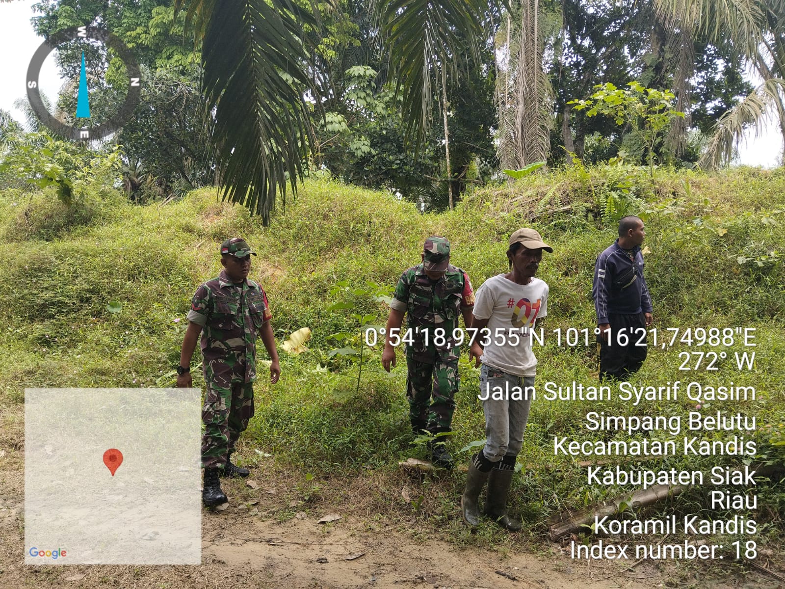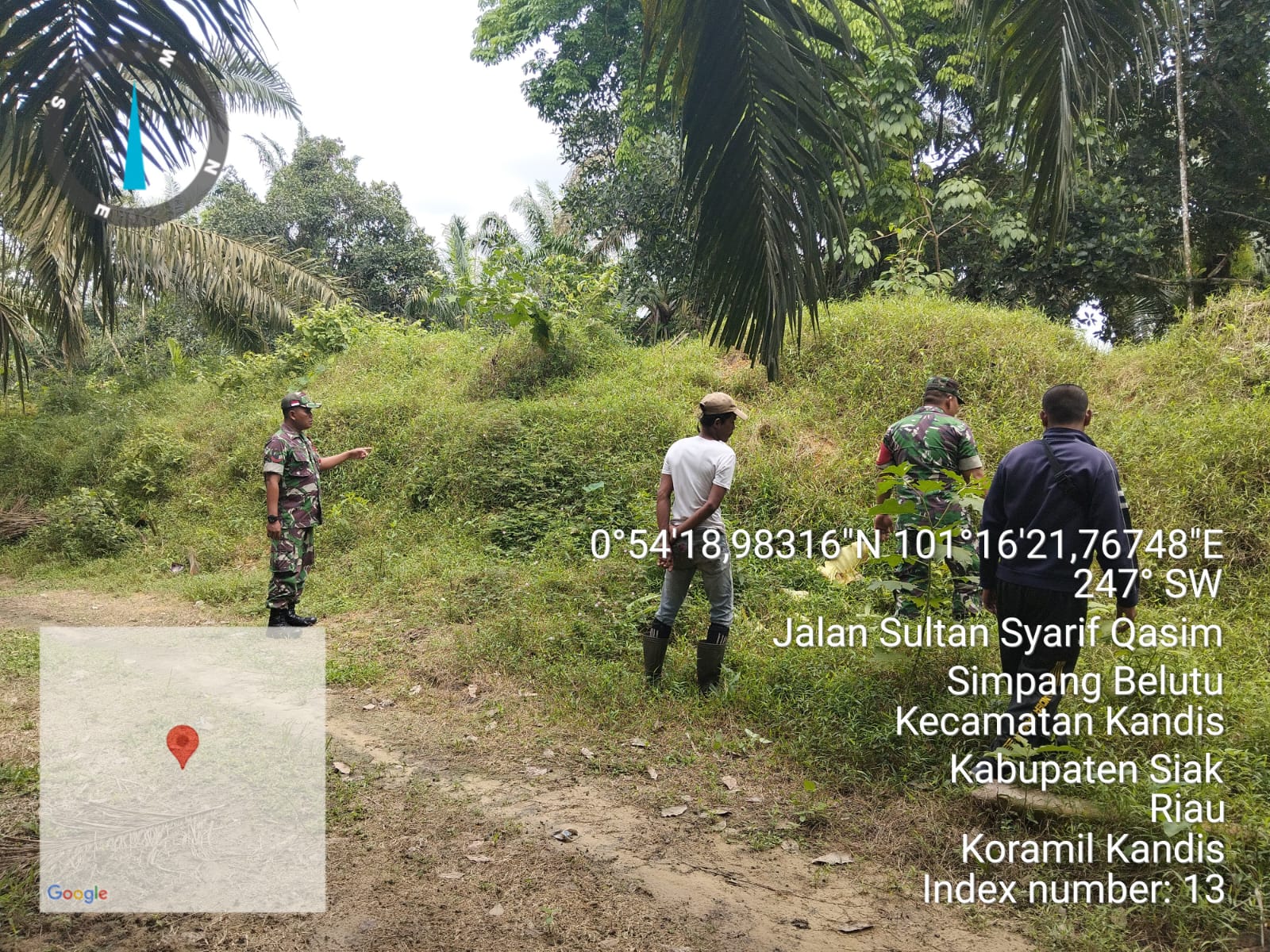 “Saat ini kami yang terdiri dari dua orang Babinsa bersama dua orang warga melaksanakan kegiatan patroli karhutla tepatnya di Kelurahan Telaga Sam Sam Kecamatan Kandis Kabupaten Siak.