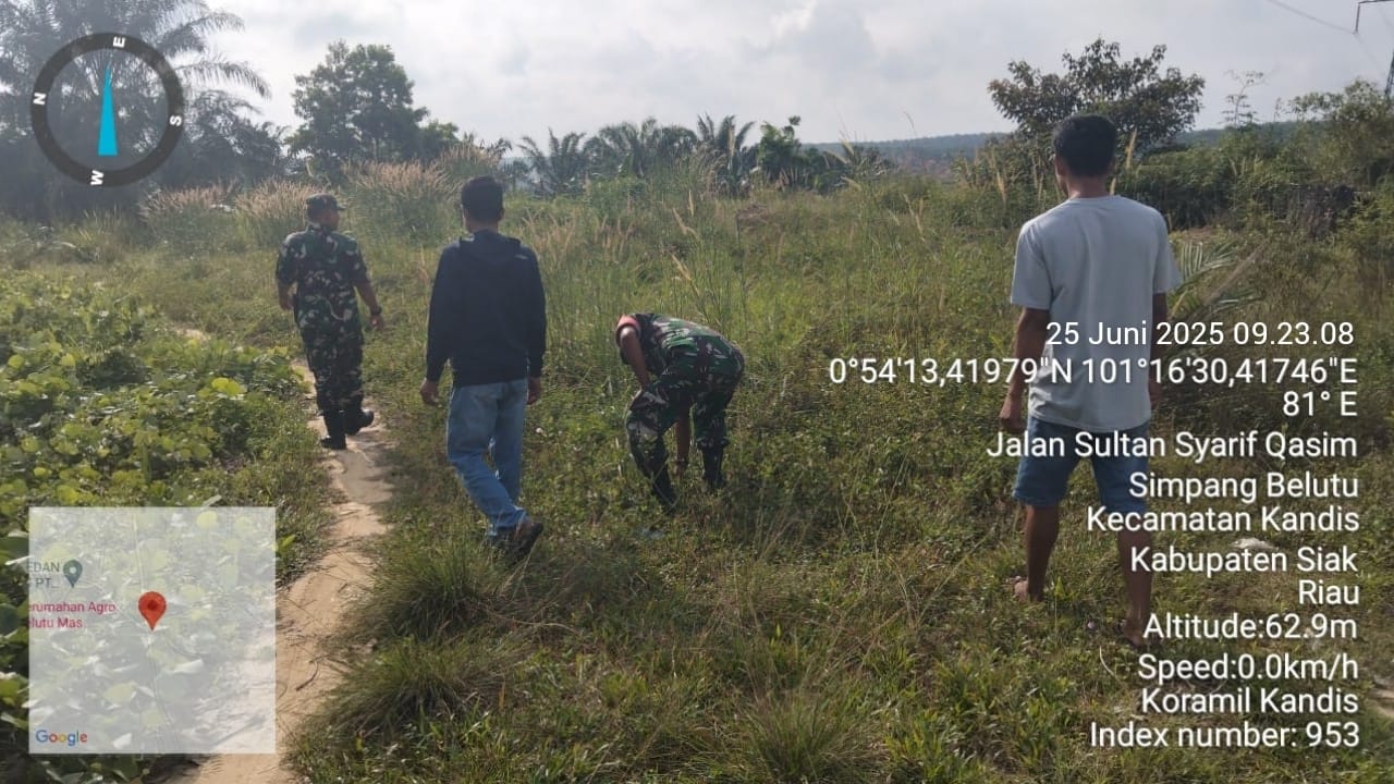 Babinsa Sertu Ridho Utomo bersama rekannya Kopda Dedi Irawan menyebutkan,” Bahwa hari ini disaat pihaknya bersama warga tempatan melaksanakan patroli karhutlah diarea lahan rawan terbakar di wilayah Kampung Belutu pada situasi kondisi cuaca cerah.