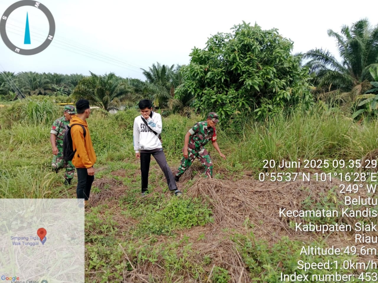 KANDIS – MATAHUKUM.ID – Babinsa Koramil 05/Pwk Kandis yaitu Sertu Abdul Arfan S dan Koptu K. Sitohang bersama warga tempatan melaksanakan kegiatan rutin yaitu berpatroli karhutlah diarea lahan rawan terbakar hari ini di wilayah Kekurahan Kandis Kota Kecamatan Kandis Kabupaten Siak, Riau.