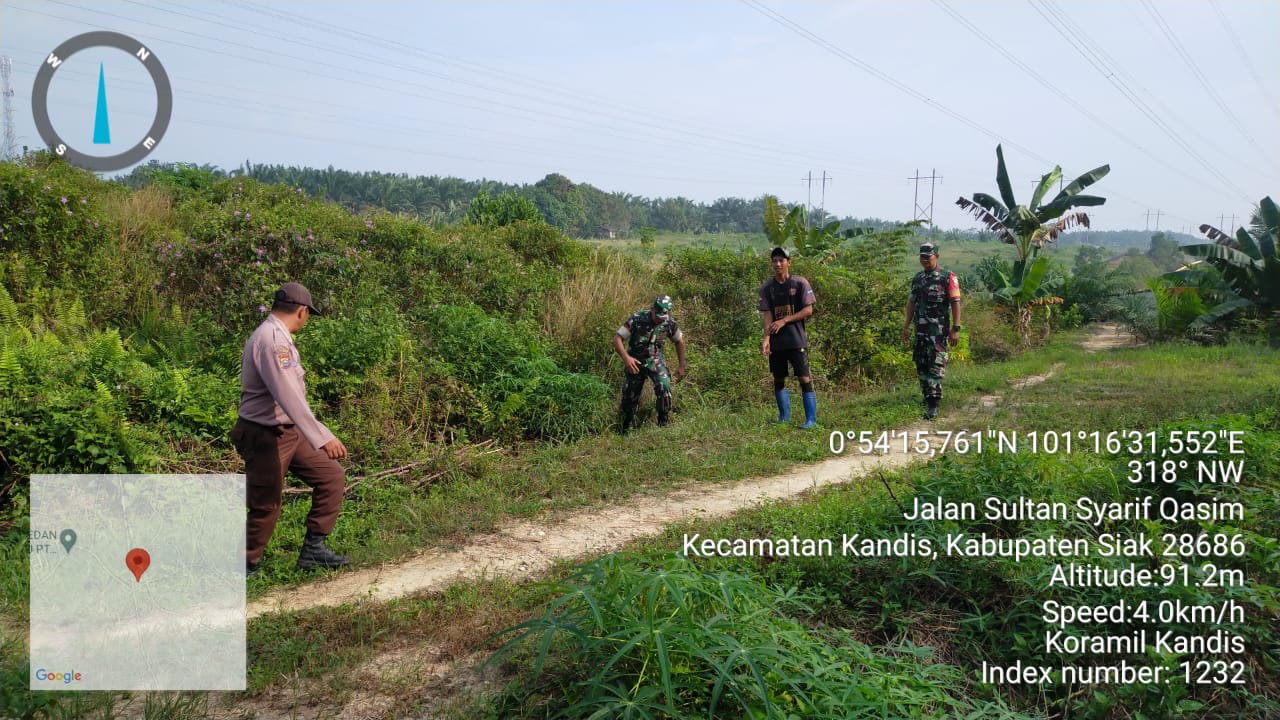 KANDIS – MATAHUKUM.ID – Babinsa Koramil 05/Pwk Kandis yaitu Sertu Suriyadi dan Sertu Julia Darma bersama warga tempatan melaksanakan kegiatan rutin yaitu berpatroli karhutlah diarea lahan rawan terbakar hari ini di wilayah Kelurahan Simpang Belutu Kecamatan Kandis Kabupaten Siak, Riau.