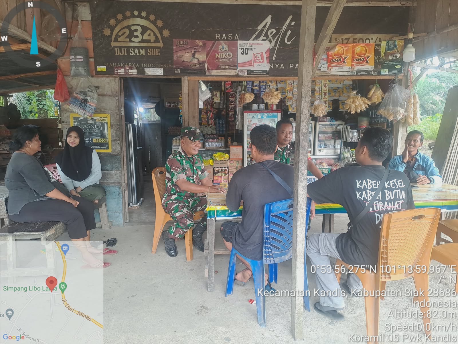 Sebelum patroli pengamanan Line Pipa PHR dilakukan, Babinsa Peltu Yus Armin bersama rekannya Sertu Andi Satria melaksanakan Bin Komsos tentang SKK Migas dengan warga dijalan Maharatu Kelurahan Telaga Sam Sam Kecamatan Kandis.