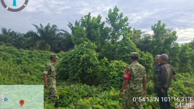 Babinsa Sertu Julia Darma bersama Serda Andi Satria melaksanakan patroli di jalan Caltex Area Palapa Kelurahan Simpang Belutu dan melaksanakan patroli migas di Line Pipa Mindal – 5 Area Kelurahan Simpang Belutu.