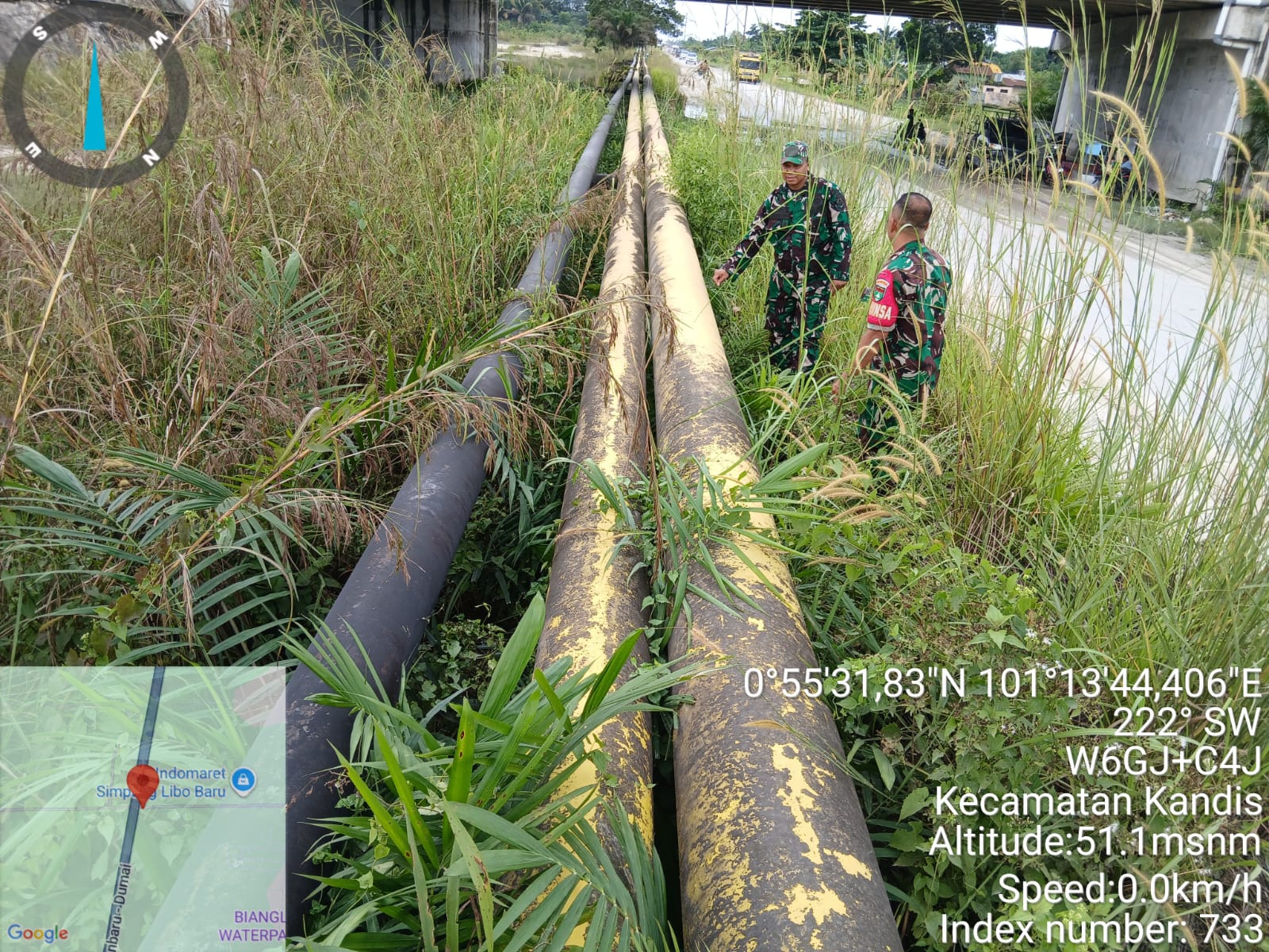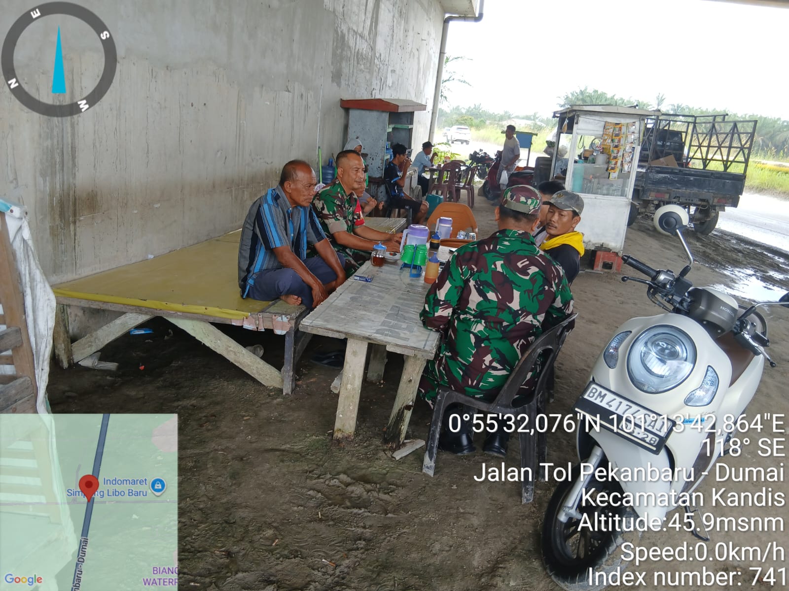 Sebelum patroli pengamanan Line Pipa PHR dilakukan, Babinsa Peltu Rahman S bersama rekannya Sertu Bosur Siregar melaksanakan Bin Komsos tentang SKK Migas dengan warga dijalan Libo kilometer dua Kelurahan Kandis Kota Kecamatan Kandis.