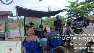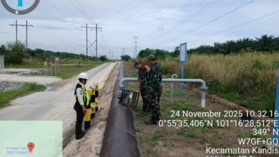 KANDIS – MATAHUKUM.ID – Dalam upaya TNI memberi rasa aman kepada Objek Vital Nasional PT. Pertamina Hulu Rokan (PHR) Dua Personil Babinsa Koramil 05/Pwk Kandis Kodim 0322/Siak, Sertu Abdul Arfan dan Sertu Bosur Siregar bersama petugas pengamanan dari pihak PHR melaksanakan kegiatan Patroli dan Bin Komsos tentang SKK Migas. Senin, 24 November 2025.