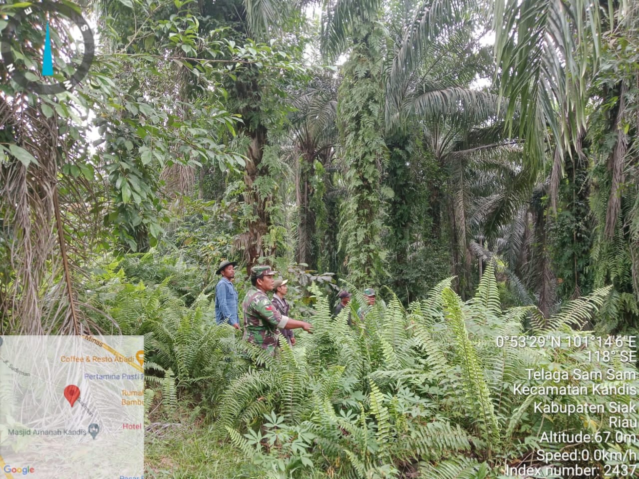 Babinsa Serma Budi Santoso bersama rekannya Koptu K. Sitohang menyebutkan,” Bahwa hari ini disaat pihaknya bersama tiga orang warga tempatan melaksanakan patroli karhutlah diarea lahan rawan terbakar di wilayah Kampung Kandis pada situasi kondisi cuaca cerah.