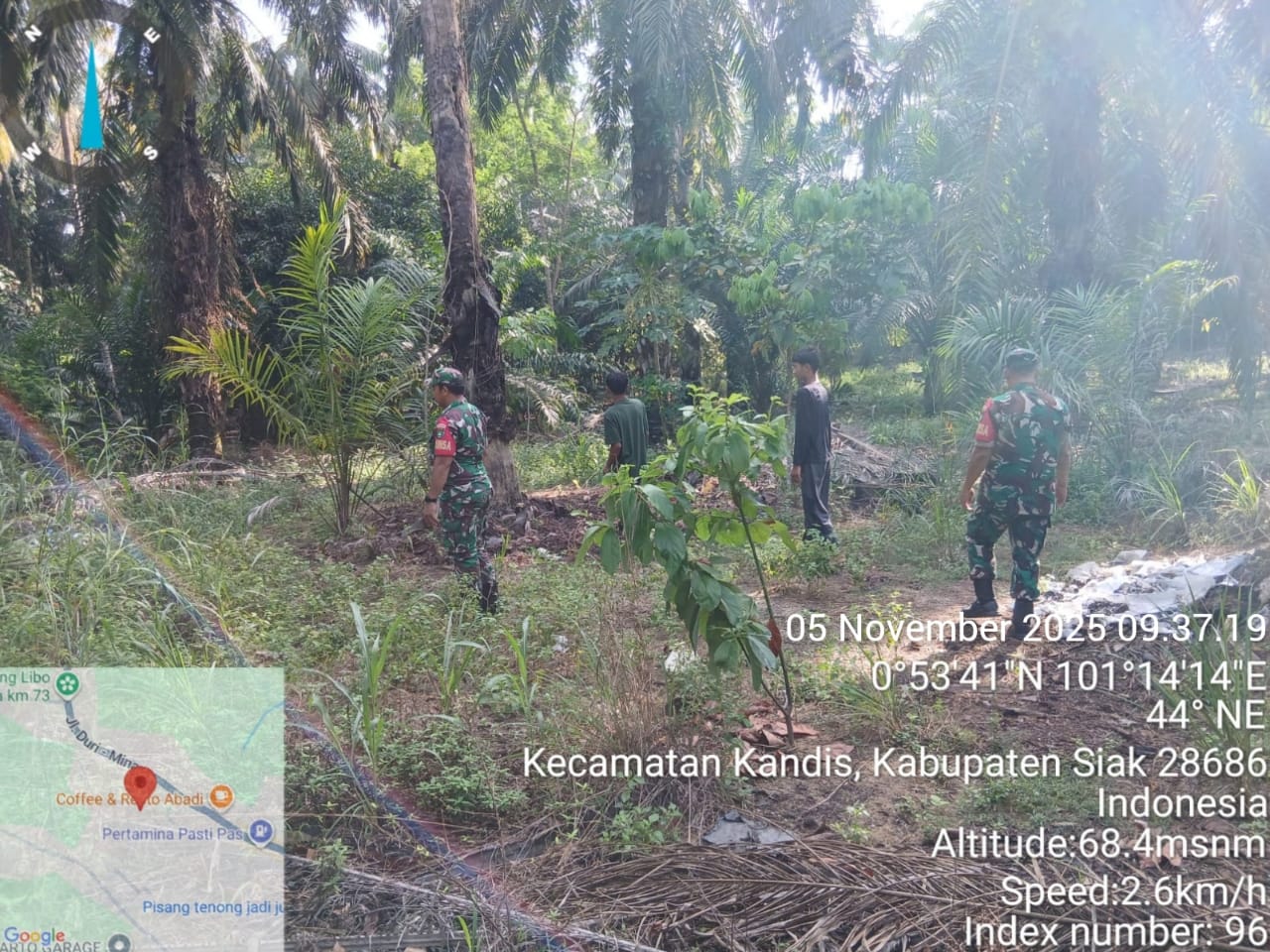 KANDIS – MATAHUKUM.ID – Babinsa Koramil 05/Pwk Kandis yaitu Peltu Rahman S dan Sertu Bosur Siregar melaksanakan kegiatan patroli karhutla di wilayah Kelurahan Simpang Belutu Kecamatan Kandis Kabupaten Siak, Riau. Rabu, 5 November 2025.