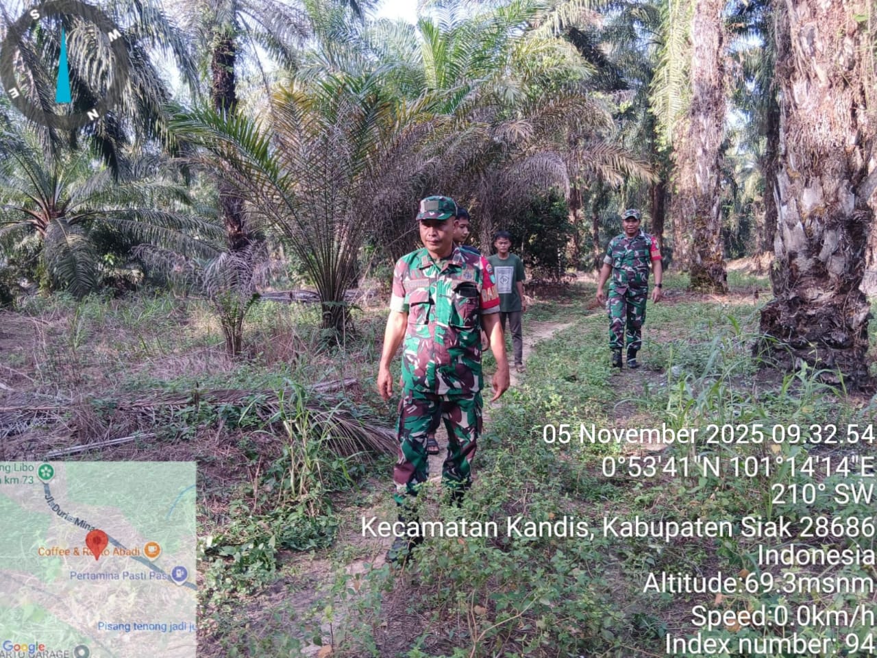 KANDIS – MATAHUKUM.ID – Babinsa Koramil 05/Pwk Kandis yaitu Peltu Rahman S dan Sertu Bosur Siregar melaksanakan kegiatan patroli karhutla di wilayah Kelurahan Simpang Belutu Kecamatan Kandis Kabupaten Siak, Riau. Rabu, 5 November 2025.