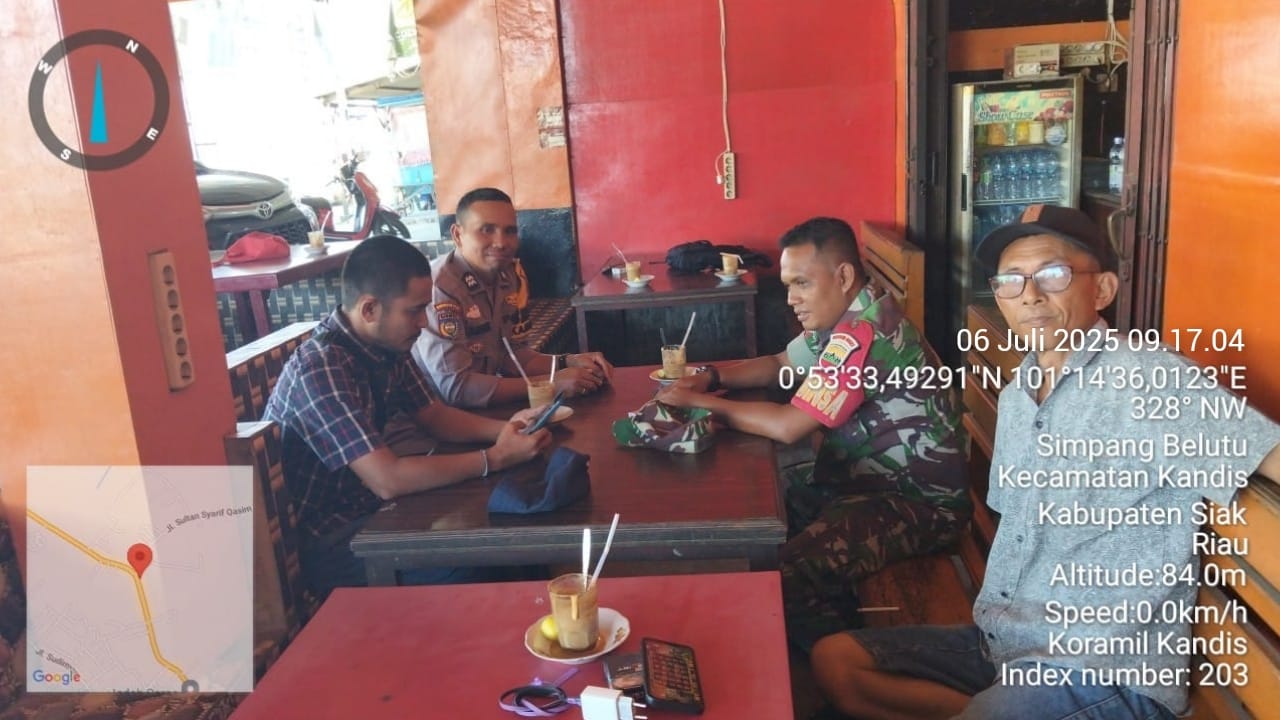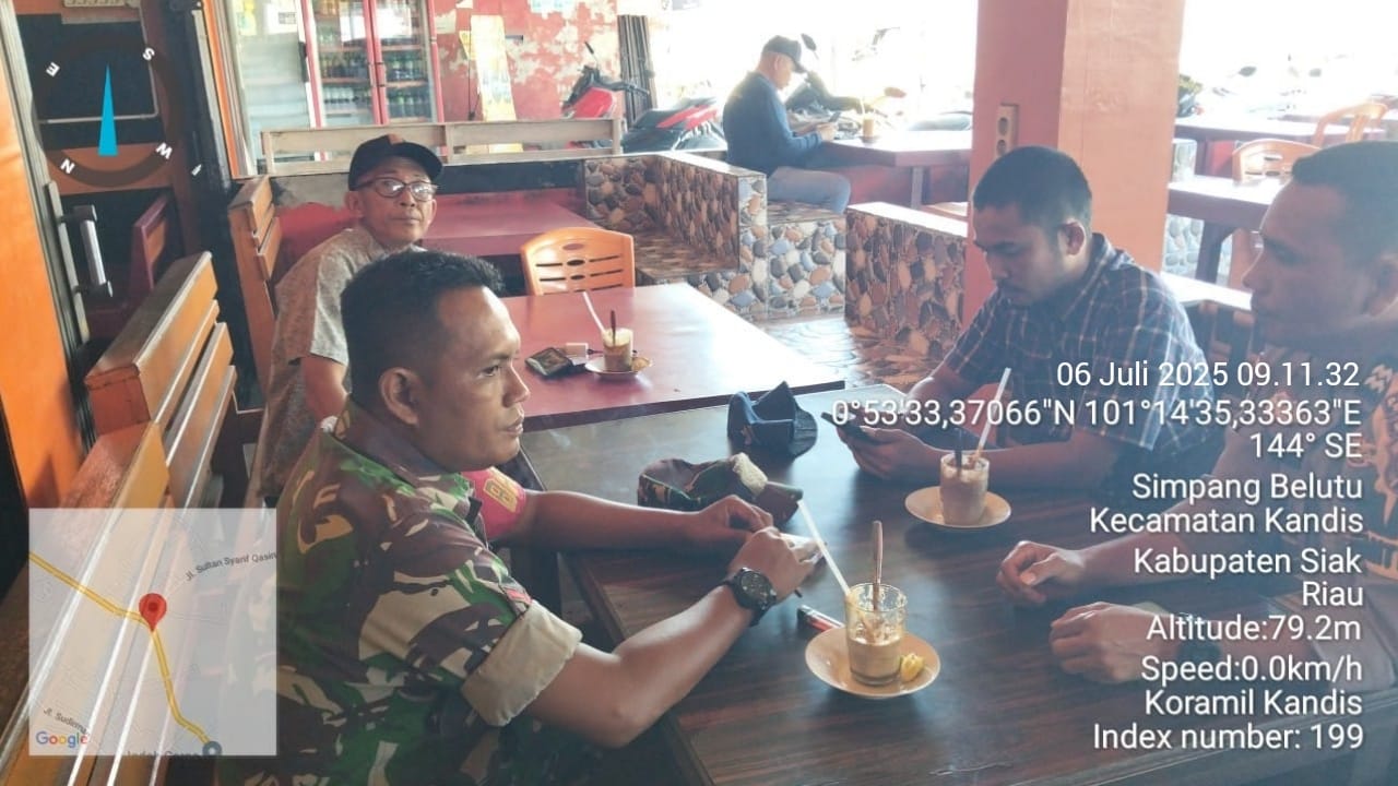 KANDIS – MATAHUKUM.ID – Babinsa Koramil 05/Pwk Kandis Kodim 0322 /Siak, Kopda Dedi Irawan melaksanakan Komsos bersama warga di Kelurahan Simpang Belutu Kecamatan Kandis Kabupaten Siak, Riau. Minggu, 6 Juli 2025.