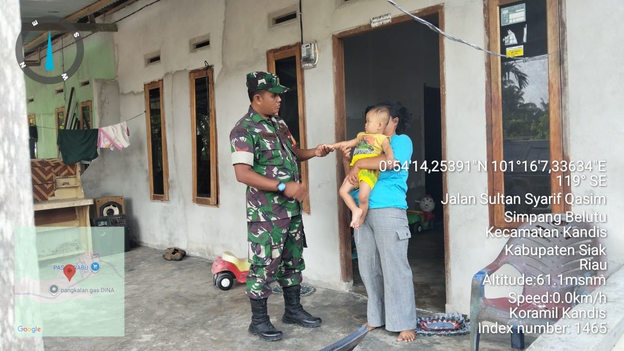 KANDIS – MATAHUKUM.ID – Dalam rangka memutus stunting di wilayah Kecamatan Kandis maka dari itu, Anggota Koramil 05/ Pwk Kandis Kodim 0322 /Siak yaitu Babinsa Kopda Dedi Irawan melaksanakan kegiatan pengecekan anak stunting yang terdapat di Kelurahan Simpang Belutu Kecamatan Kandis Kabupaten Siak, Riau. Senin, 9 Maret 2026.