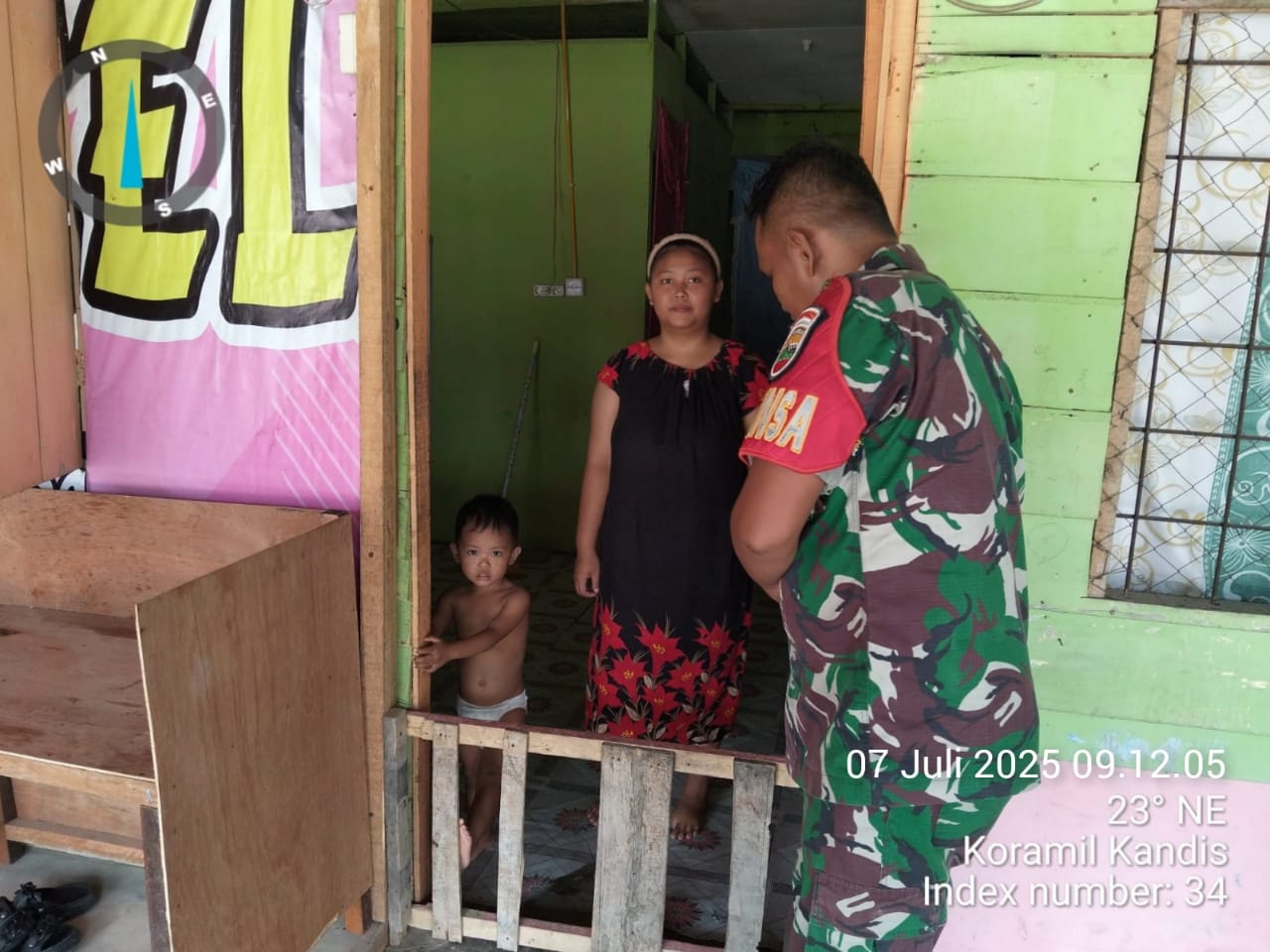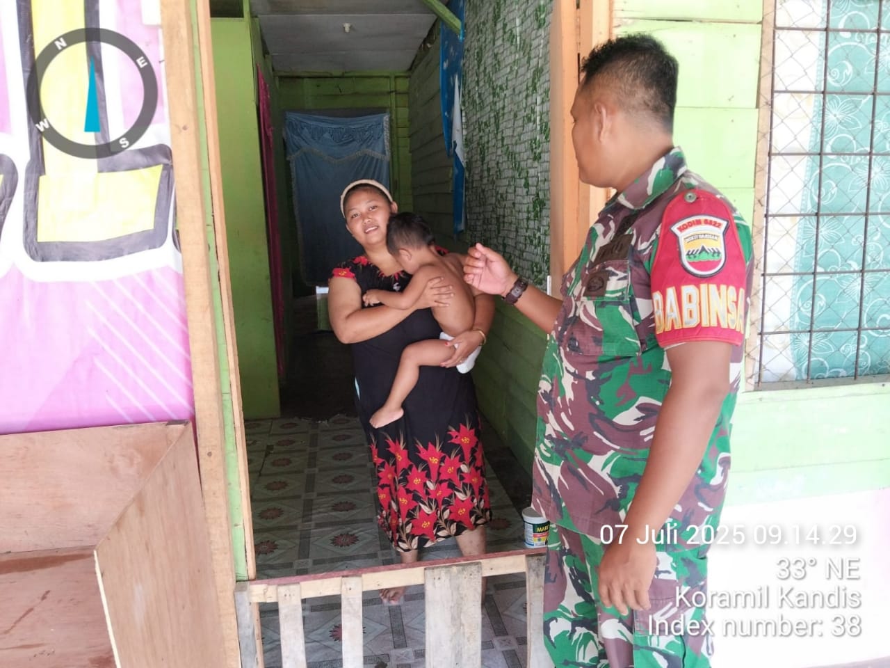 Pada saat pengecekan anak stunting melibatkan Babinsa Kopda Dedi Irawan dan anak stunting yang didampingi oleh orang tuanya.