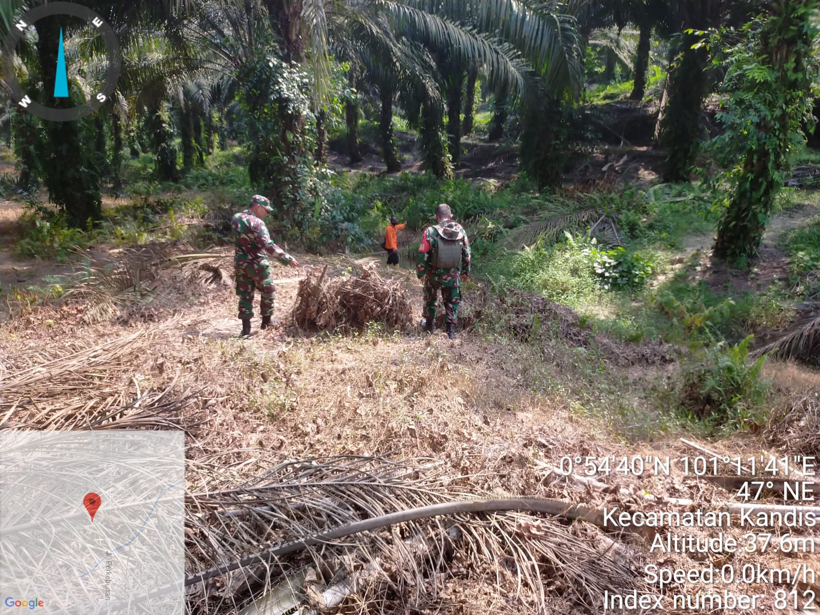 KANDIS – MATAHUKUM.ID – Babinsa Koramil 05/Pwk Kandis yaitu Sertu Abdul Arfan dan Sertu Sutikno bersama dua orang warga tempatan melaksanakan kegiatan rutin yaitu berpatroli karhutlah diarea lahan rawan terbakar hari ini di wilayah Kelurahan Simpang Belutu Kecamatan Kandis Kabupaten Siak, Riau.