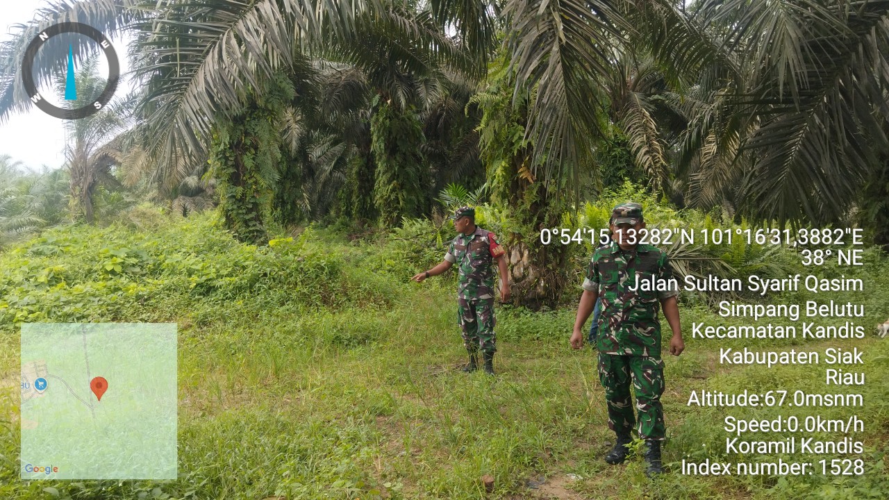 “Saat ini kami yang terdiri dari dua orang Babinsa bersama warga Tempatan melaksanakan kegiatan patroli karhutla tepatnya di wilayah Kelurahan Kandis Kota Kecamatan Kandis Kabupaten Siak.