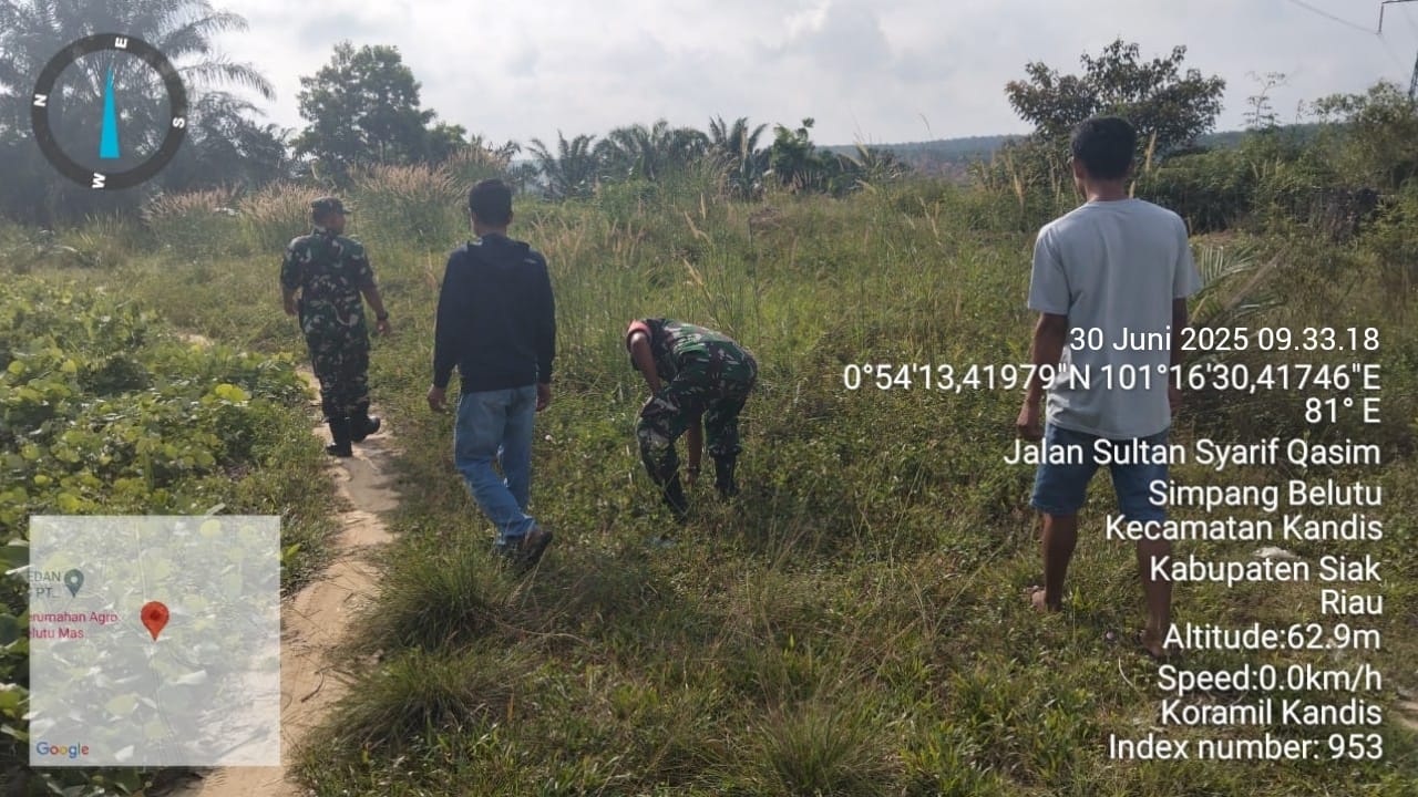 Babinsa Sertu Ridho Utomo bersama rekannya Kopda Dedi Irawan menyebutkan,” Bahwa hari ini disaat pihaknya bersama warga tempatan melaksanakan patroli karhutlah diarea lahan rawan terbakar di wilayah Kelurahan Simpang Belutu pada situasi kondisi cuaca cerah.