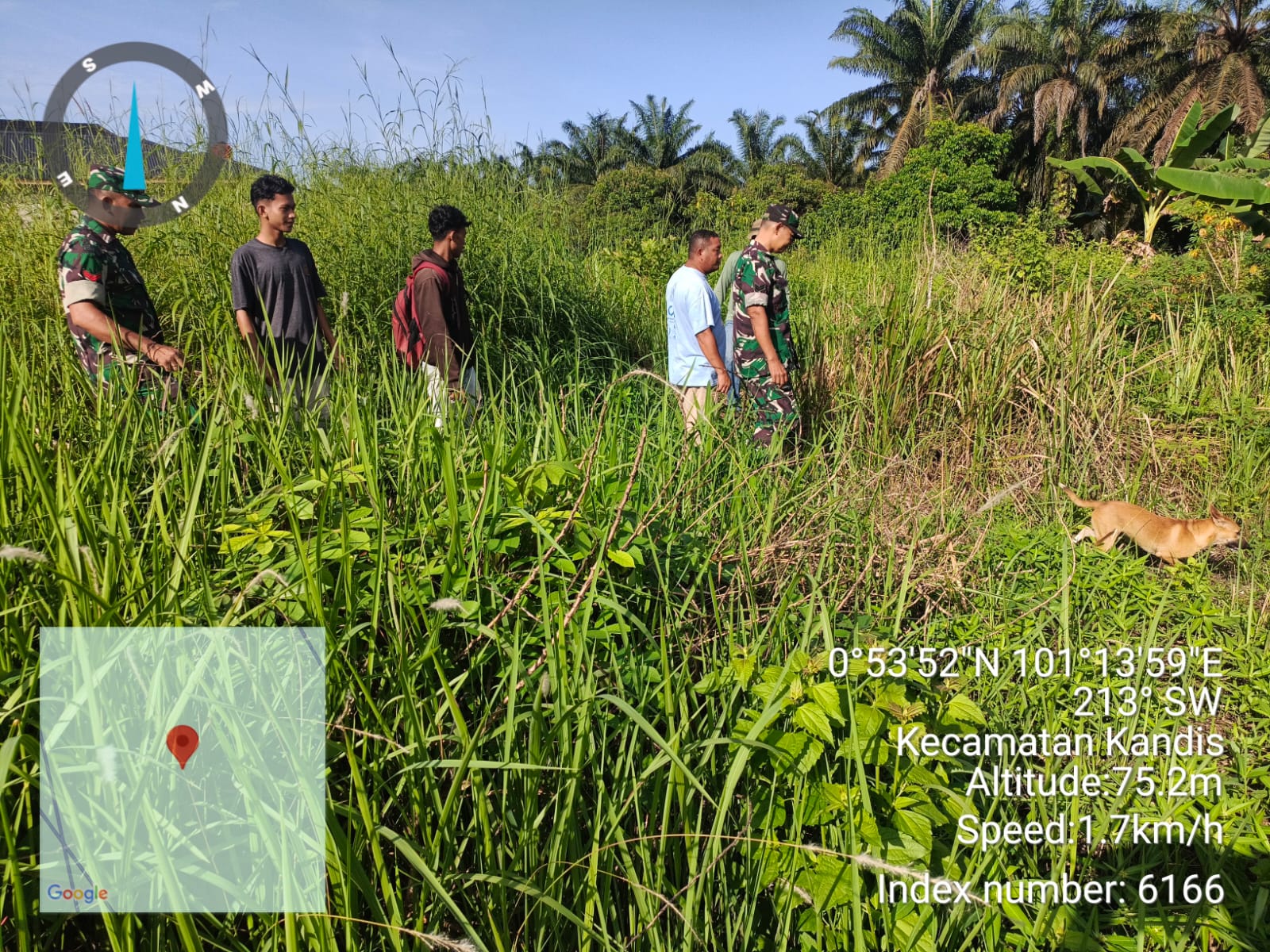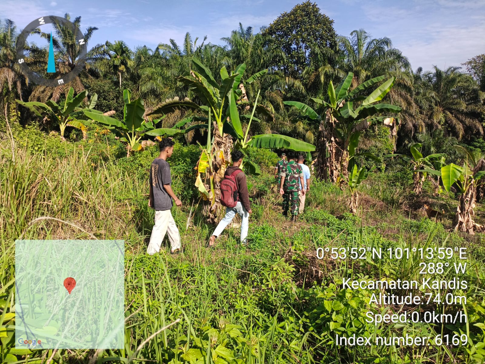 KANDIS – MATAHUKUM.ID – Babinsa Koramil 05/Pwk Kandis, Sertu Suriyadi JU dan Koptu I Ketut Budiasa bersama tiga orang warga tempatan melaksanakan kegiatan Patroli Kebakaran Hutan dan Lahan di sejumlah perkebunan serta lahan masyarakat yang dianggap rawan kebakaran diwilayah Kelurahan Telaga Sam Sam Kecamatan Kandis Kabupaten Siak, Riau. Minggu, 10 Agustus 2025.
