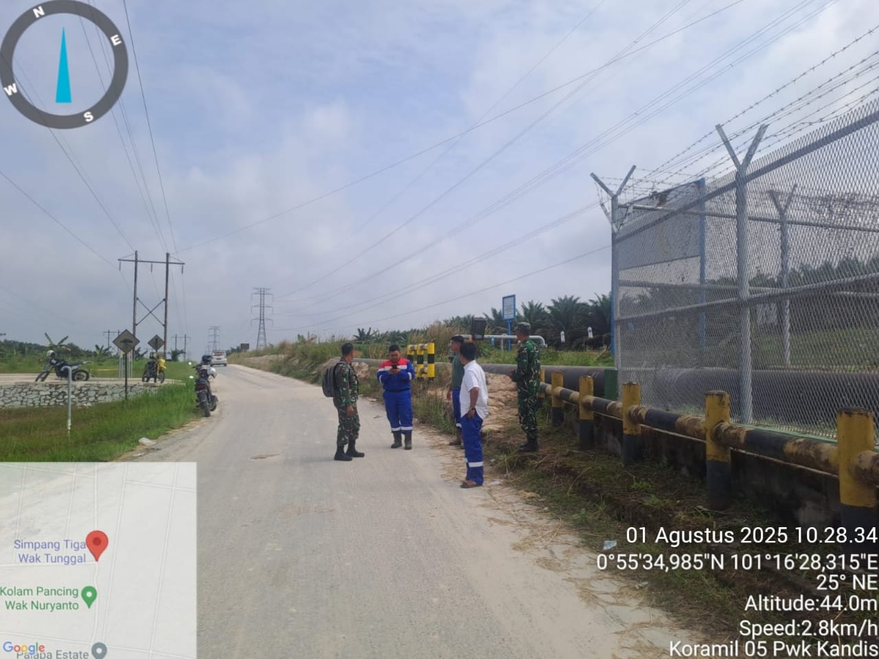 KANDIS – MATAHUKUM.ID – Dalam upaya TNI memberi rasa aman kepada Objek Vital Nasional PT. Pertamina Hulu Rokan (PHR) Dua Personil Babinsa Koramil 05/Pwk Kandis Kodim 0322/Siak, Sertu Andi Satria dan Serda Edy Simanjuntak bersama petugas pengamanan pihak PHR melaksanakan kegiatan Patroli dan Bin Komsos tentang SKK Migas. Jumat, 1 Agustus 2025.
