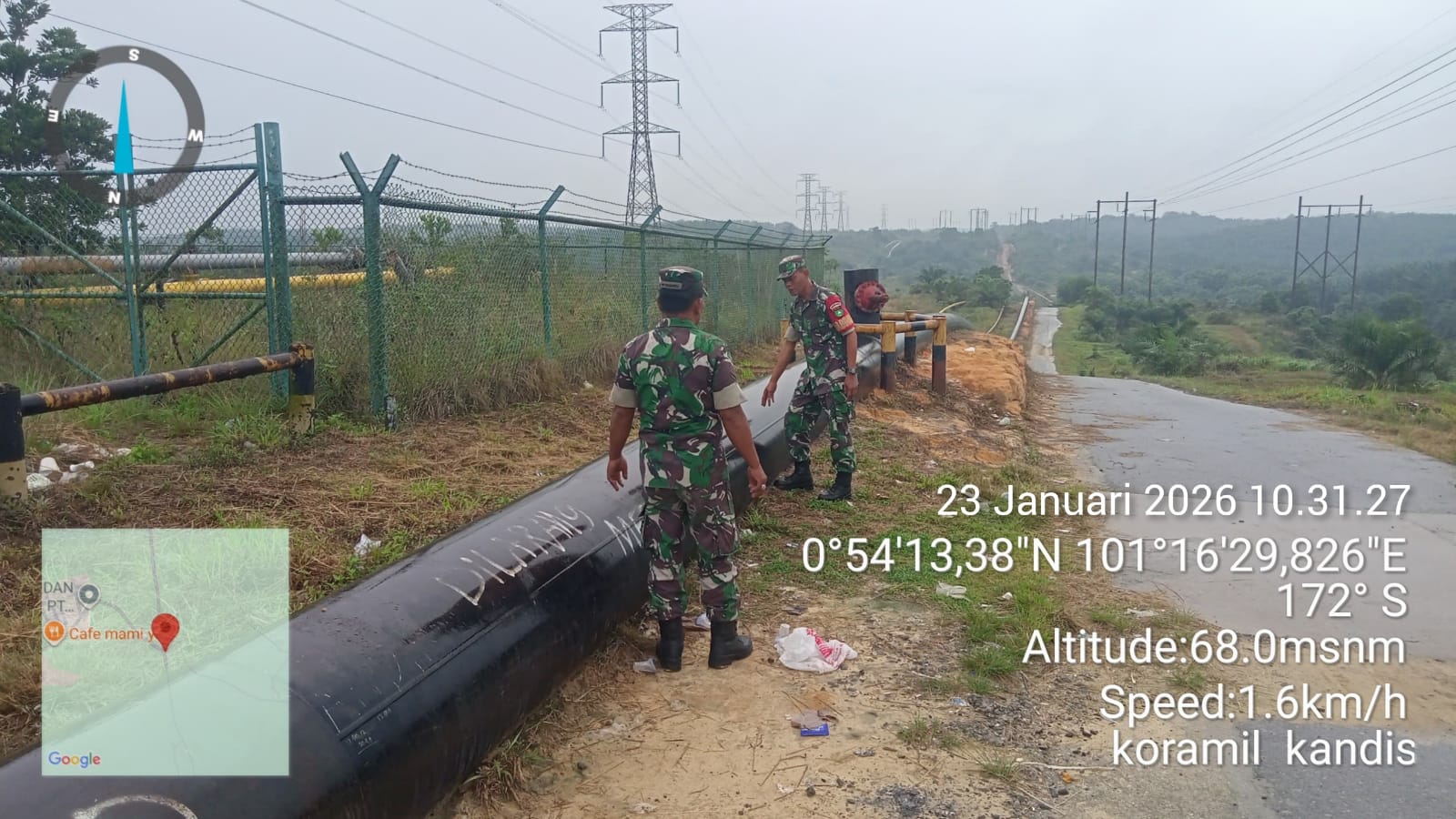 KANDIS – MATAHUKUM.ID – Dalam upaya TNI memberi rasa aman kepada Objek Vital Nasional PT. Pertamina Hulu Rokan (PHR) Dua Personil Babinsa Koramil 05/Pwk Kandis Kodim 0322/Siak, Sertu Aprianto dan Sertu Korenus JU melaksanakan kegiatan Patroli dan Bin Komsos tentang SKK Migas. Jumat, 23 Januari 2026.