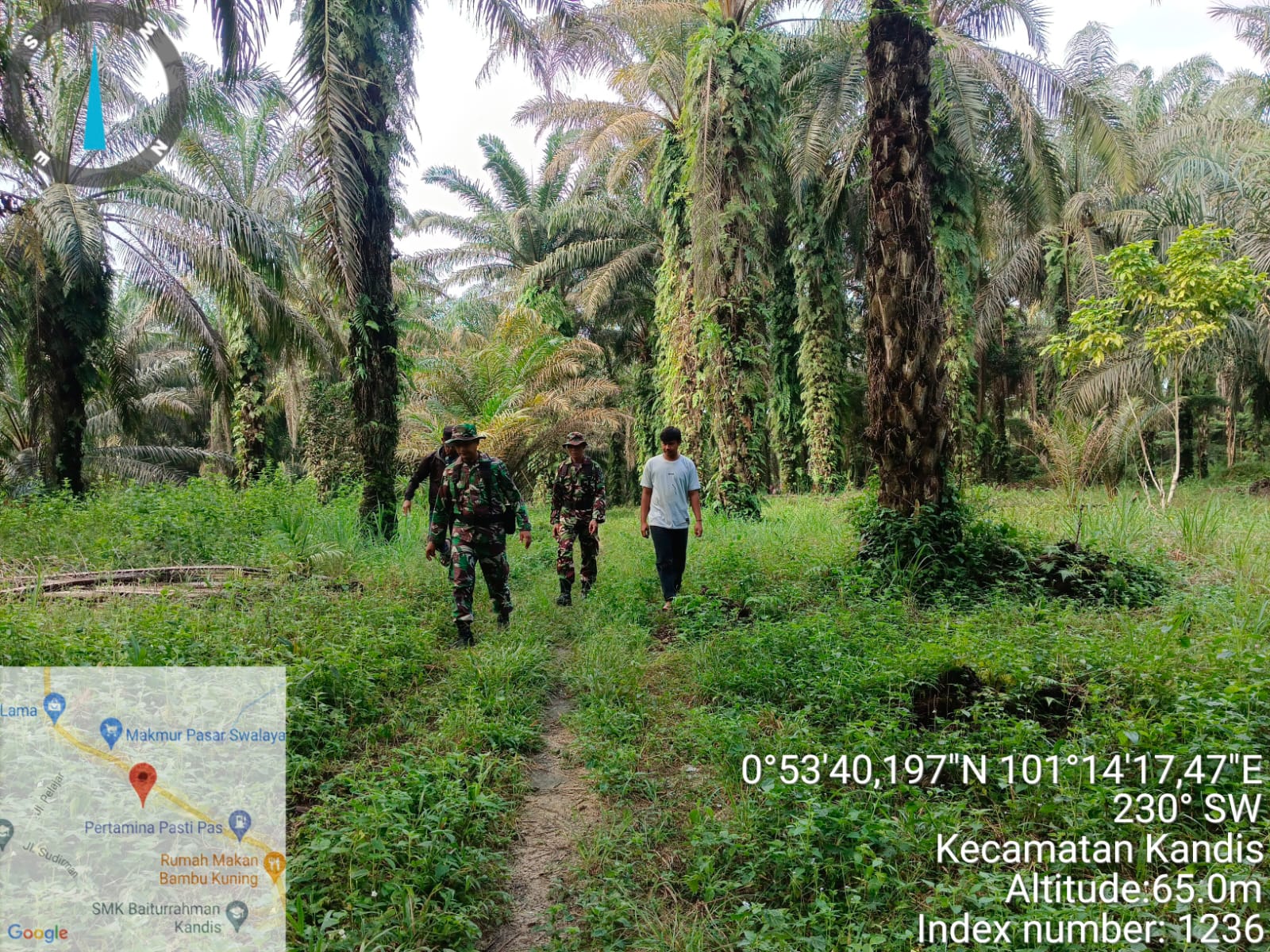 Babinsa Serma Budi Santoso bersama rekannya Sertu Aprianto menyebutkan,” Bahwa hari ini disaat pihaknya bersama dua orang warga tempatan melaksanakan patroli karhutlah diarea lahan rawan terbakar wilayah Kampung Kandis pada situasi kondisi cuaca cerah.
